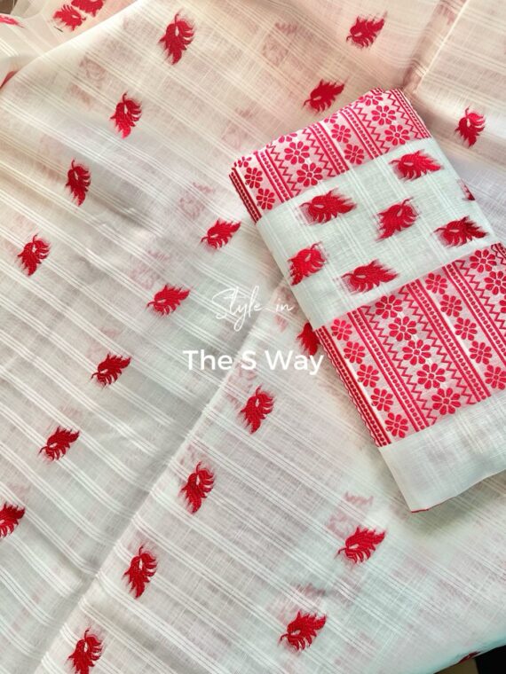 Charrvi Mekhela Sador – maroon, firozi blue, and dark green motifs
