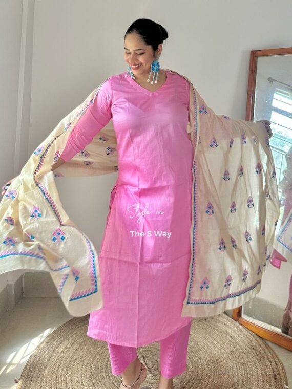 Bagisa Dupatta Kurta Set – Blush pink and sky blue