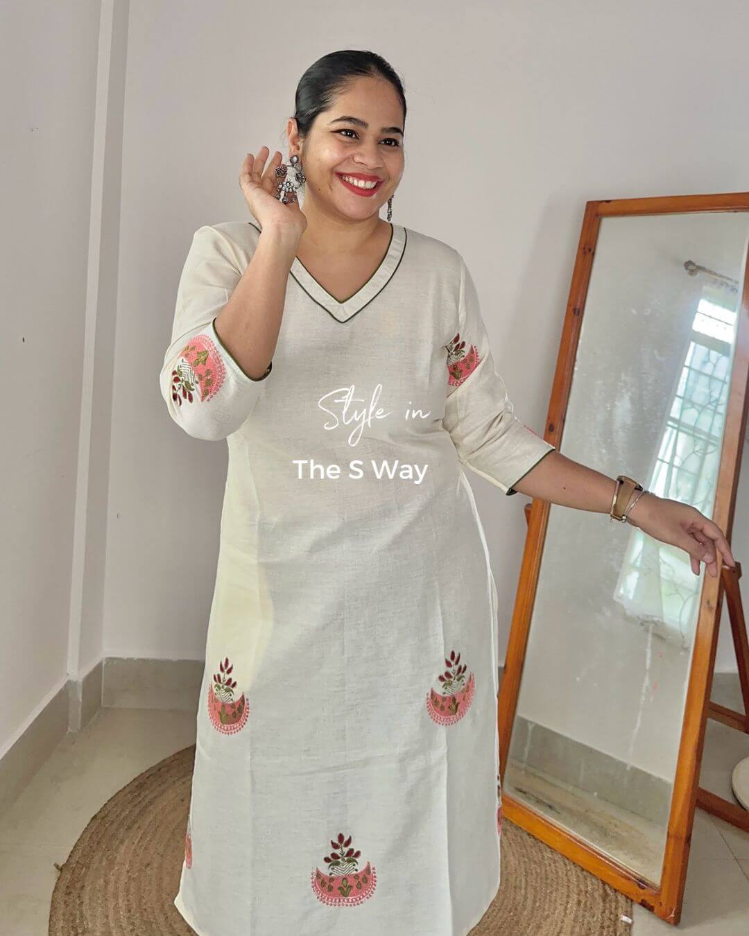 This linen-cotton single kurta is crafted for comfort and elegance. Each kurta features an exclusive design, adding a touch of uniqueness to every piece. Pants not included.