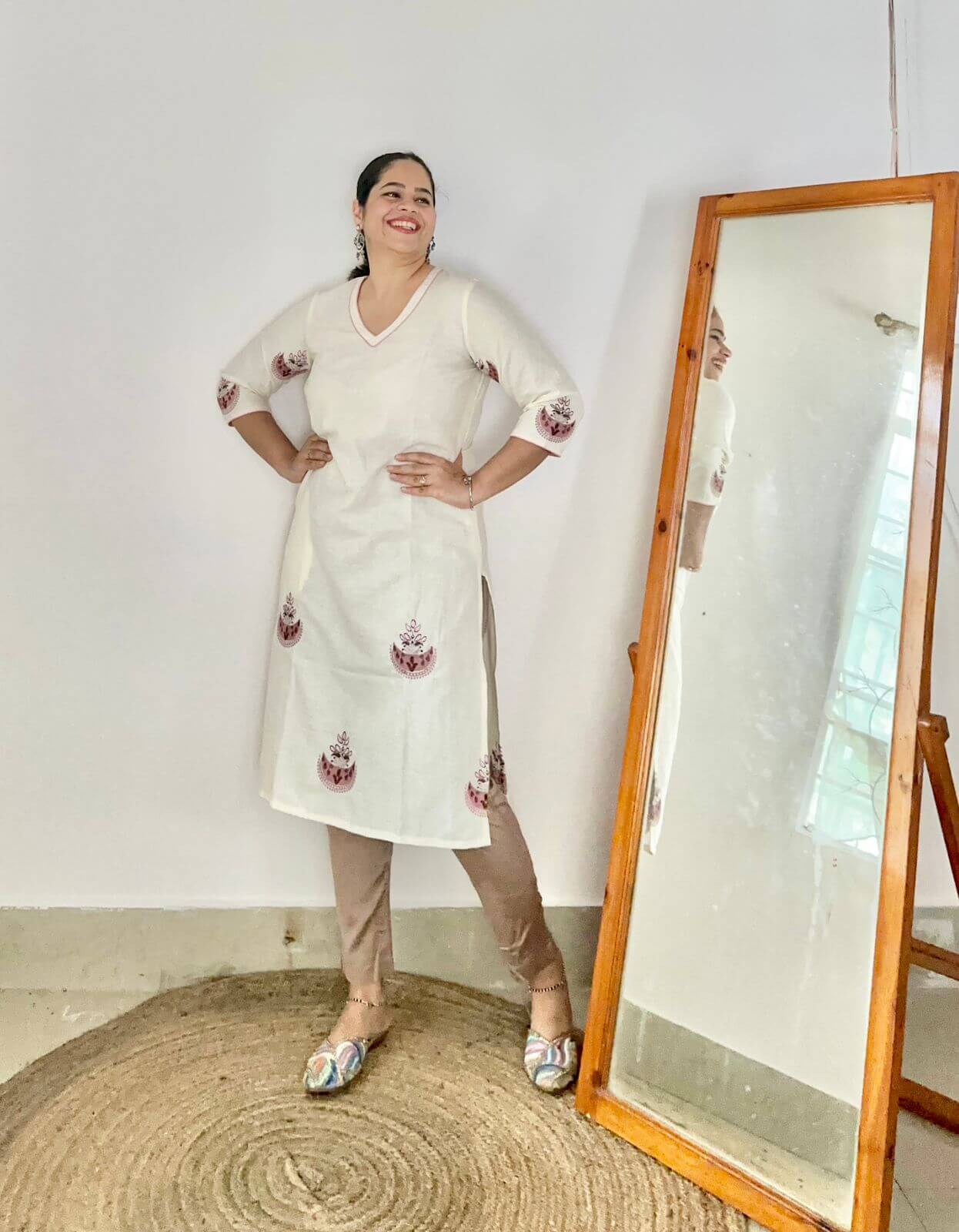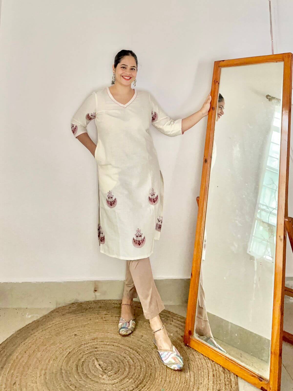 This linen-cotton single kurta is crafted for comfort and elegance. Each kurta features an exclusive design, adding a touch of uniqueness to every piece. Pants not included.