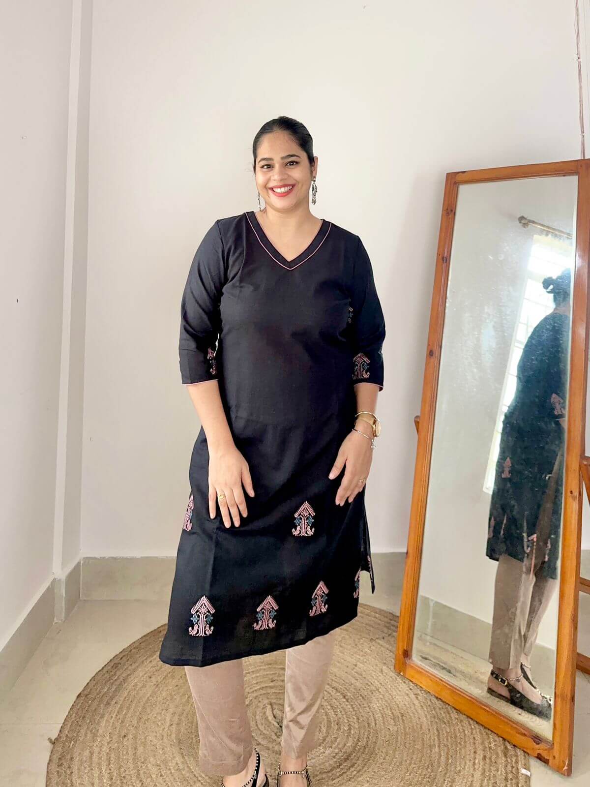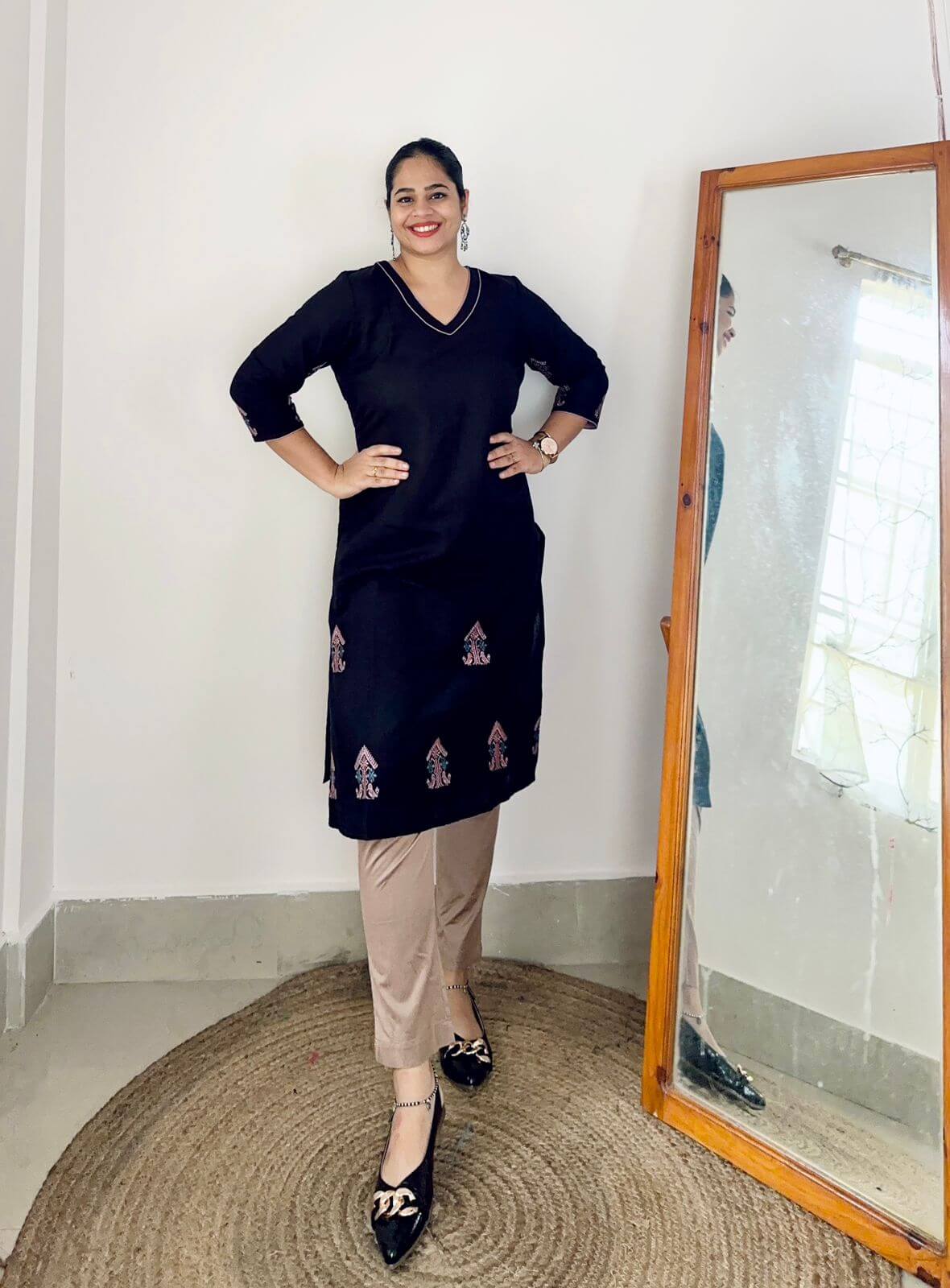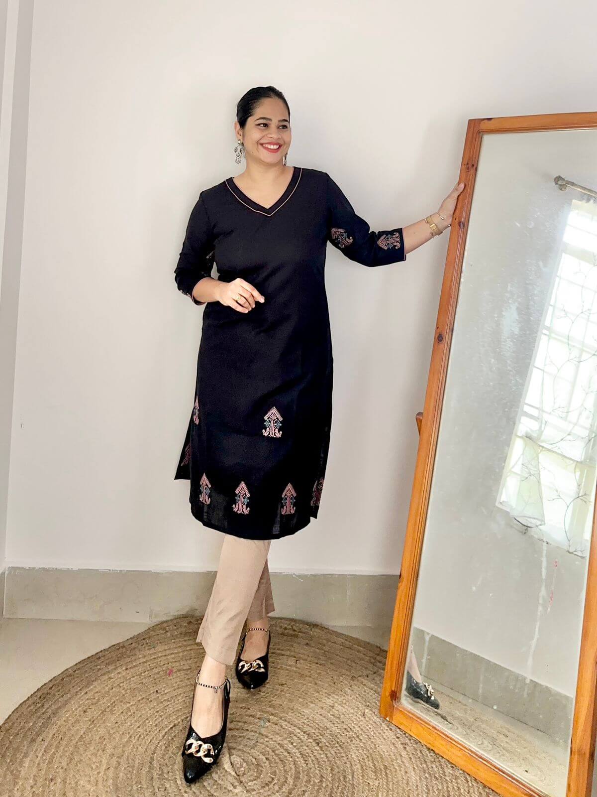 This linen-cotton single kurta is crafted for comfort and elegance. Each kurta features an exclusive design, adding a touch of uniqueness to every piece. Pants not included.