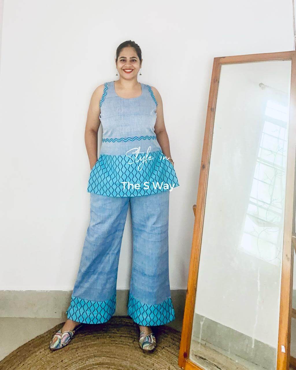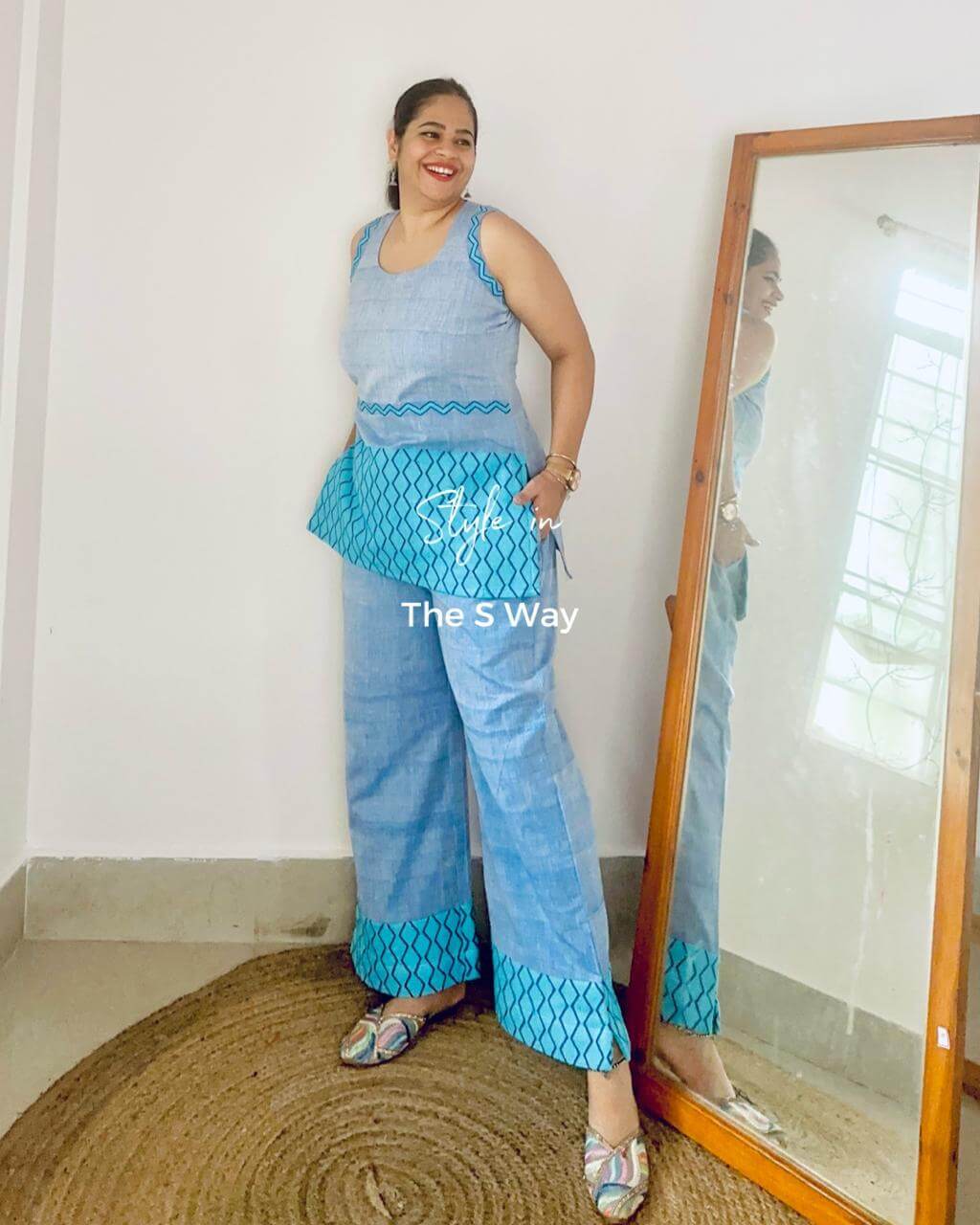 This co-ord set is crafted in TSW Handloom Signature Cotton with an exclusive Barfi Buta design. It offers a denim-like look while remaining soft, breathable, and comfortable. The versatile silhouette makes it suitable for multiple occasions.