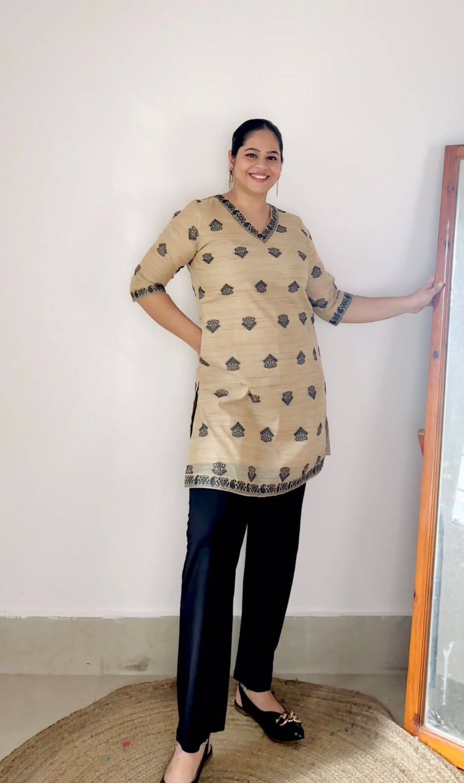A chic handloom ghisa short kurta with maroon goss buta detailing, paired with handloom cotton maroon pants. Functional and stylish, perfect for festive and elegant wear!