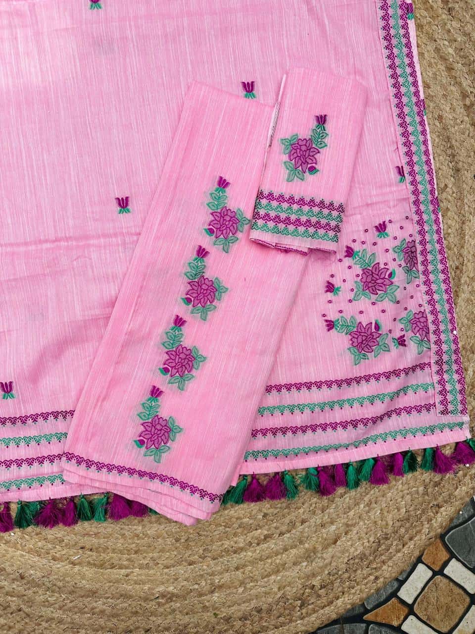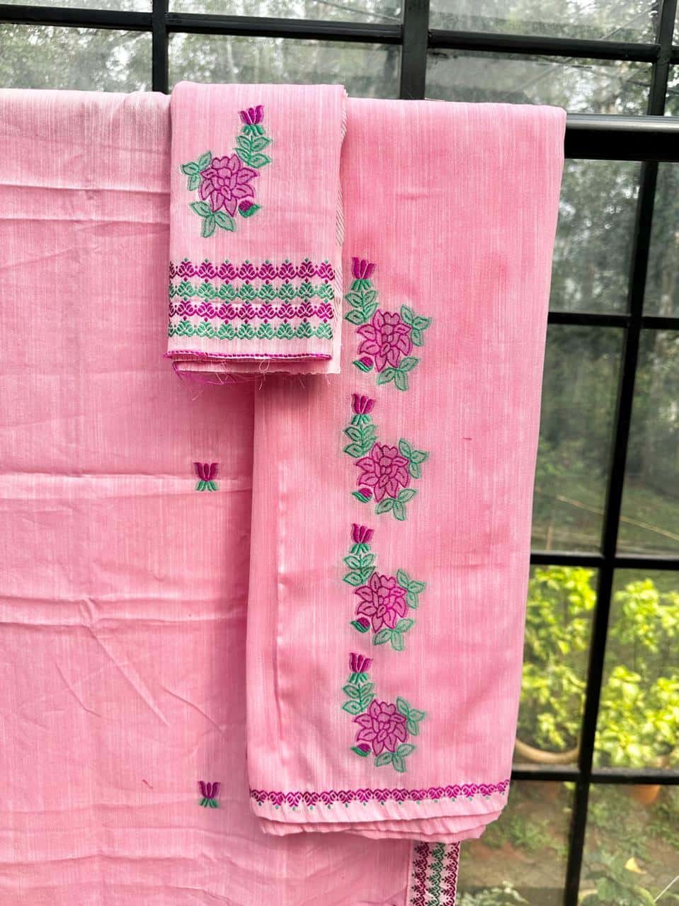 Ready-to-wear mekhela sador crafted in soft, breathable cotton for effortless comfort and ease, this piece stands out with its unique and refreshing design. The mekhela features elegant rose vine motifs flowing vertically, creating a distinctive and graceful silhouette, while the blouse piece is thoughtfully designed with single floral motifs instead of traditional borders for a modern, minimal touch. Rendered in vibrant, special colors, it brings a lively yet refined appeal that is perfect for the spring and summer seasons. Light, comfortable, and visually striking, it comes with an attached unstitched blouse piece, making it a versatile choice for everyday wear, casual outings, or subtle festive moments.
