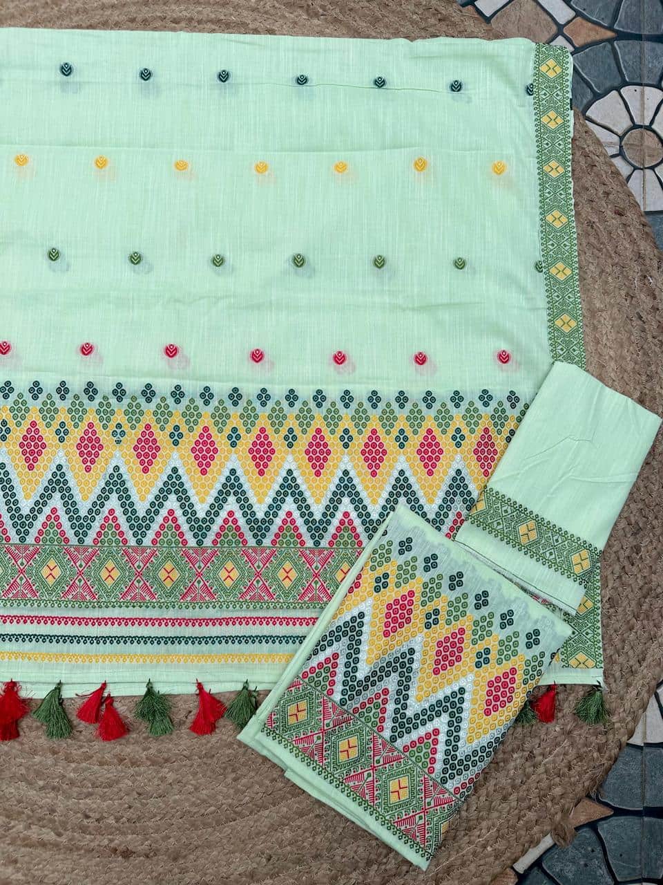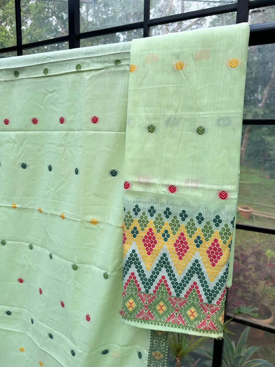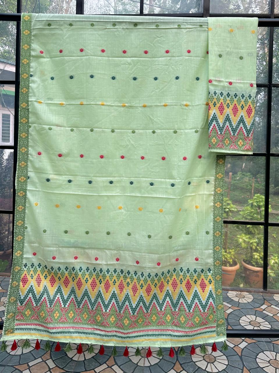 Ready-to-wear mekhela sador designed for effortless elegance and ease, these premium cotton pieces are perfect for embracing both comfort and celebration. Crafted in breathable, soft cotton, they are ideal for the summer season while being festive-friendly enough for special occasions and spring celebrations like Bohag Bihu. The soothing pastel body is beautifully enhanced with vibrant floral motifs that feel fresh, graceful, and pleasing to the eye, while delicate silver thread highlights add a subtle shimmer, elevating the overall look with a refined, premium touch.