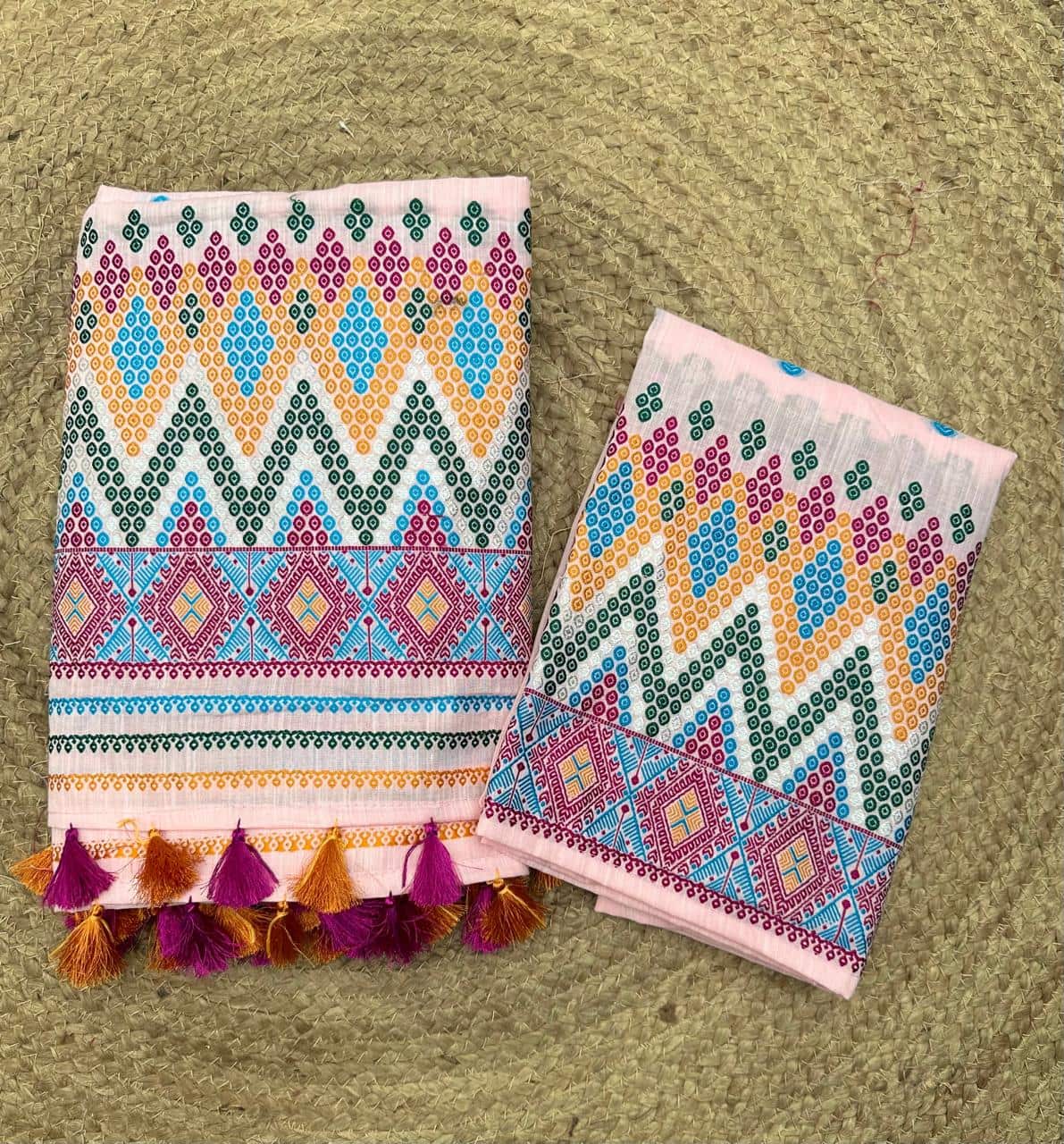 Ready-to-wear mekhela sador designed for effortless elegance and ease, these premium cotton pieces are perfect for embracing both comfort and celebration. Crafted in breathable, soft cotton, they are ideal for the summer season while being festive-friendly enough for special occasions and spring celebrations like Bohag Bihu. The soothing pastel body is beautifully enhanced with vibrant floral motifs that feel fresh, graceful, and pleasing to the eye, while delicate silver thread highlights add a subtle shimmer, elevating the overall look with a refined, premium touch.