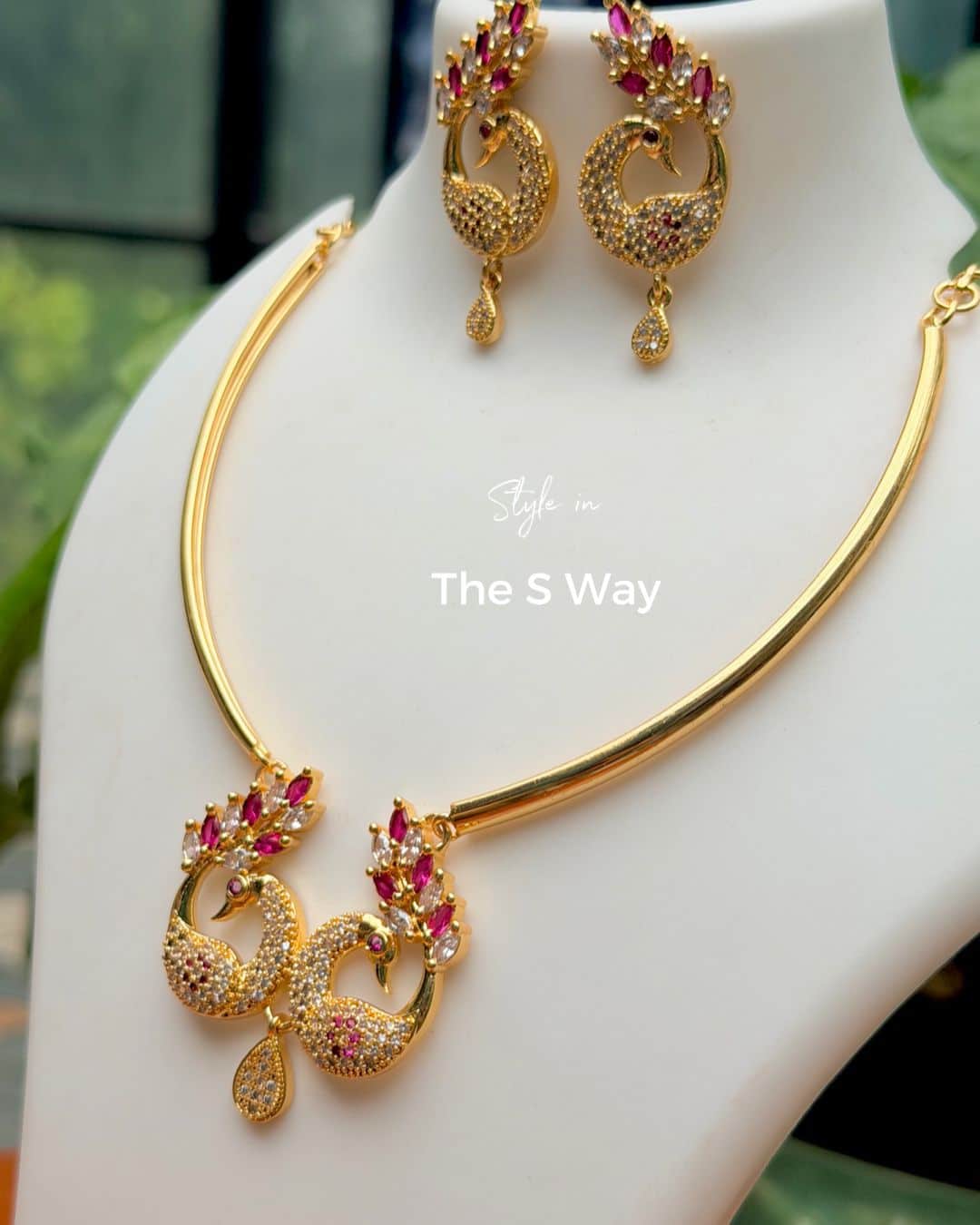 A striking blend of tradition and modern design, this contemporary necklace features an intricately crafted peacock pendant—an enduring motif in Assamese-inspired jewelry. Accentuated with a delicate hanging stone, the pendant captures elegance in motion, reflecting light with every turn.