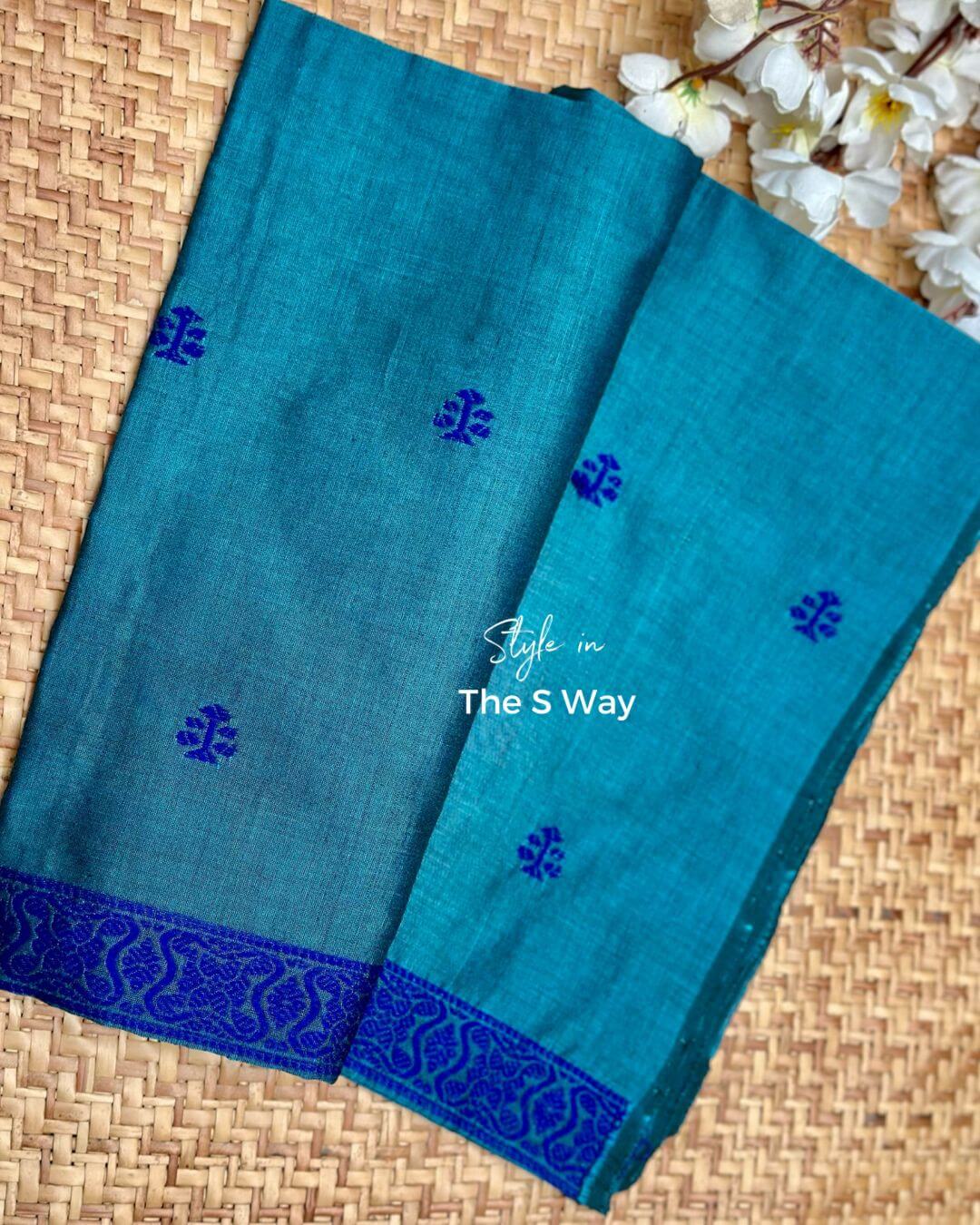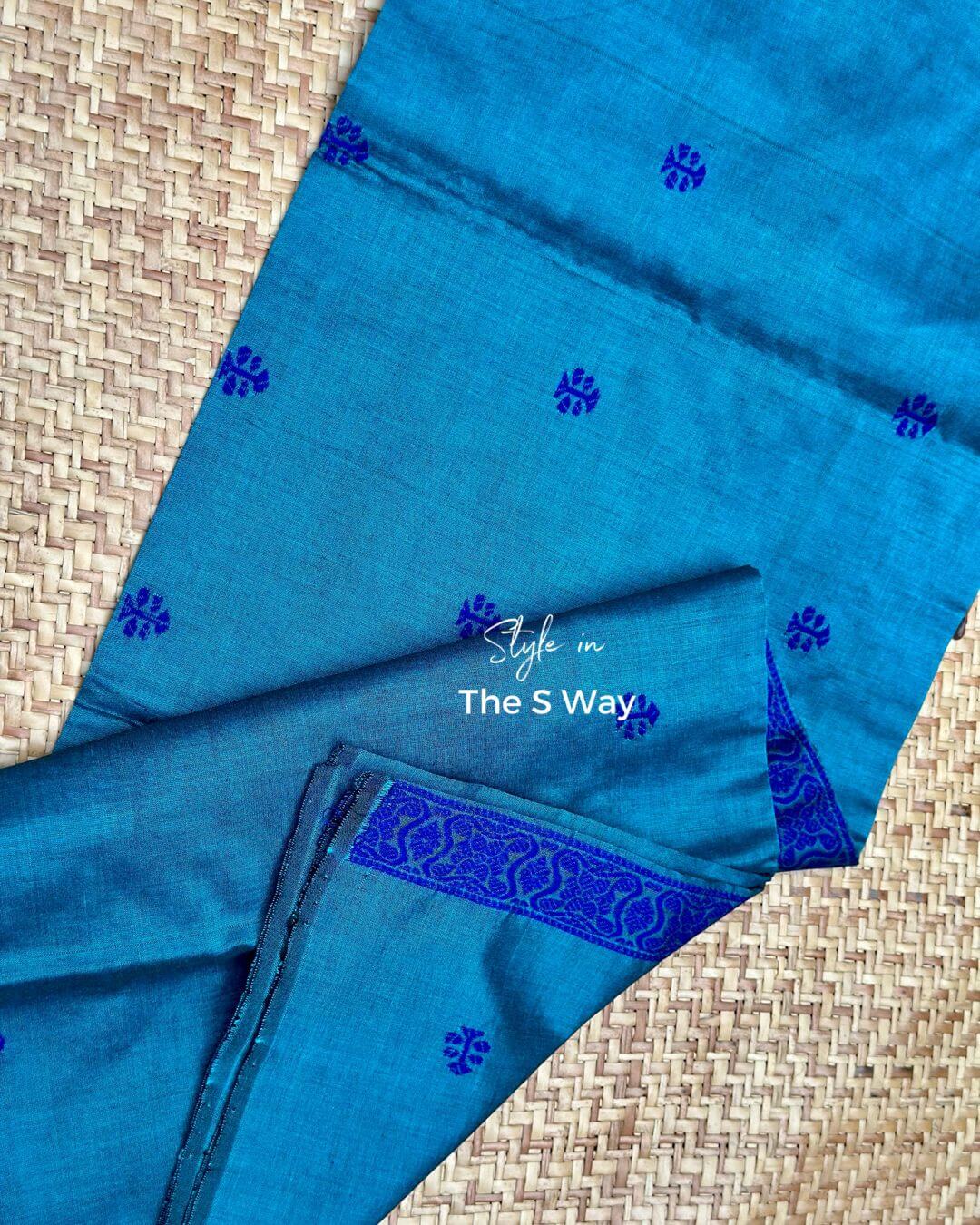 This single sador, cotton by Nuni, is crafted from soft handloom fabric and detailed with vibrant cotton thread meena work. It comes with an unstitched side pari.