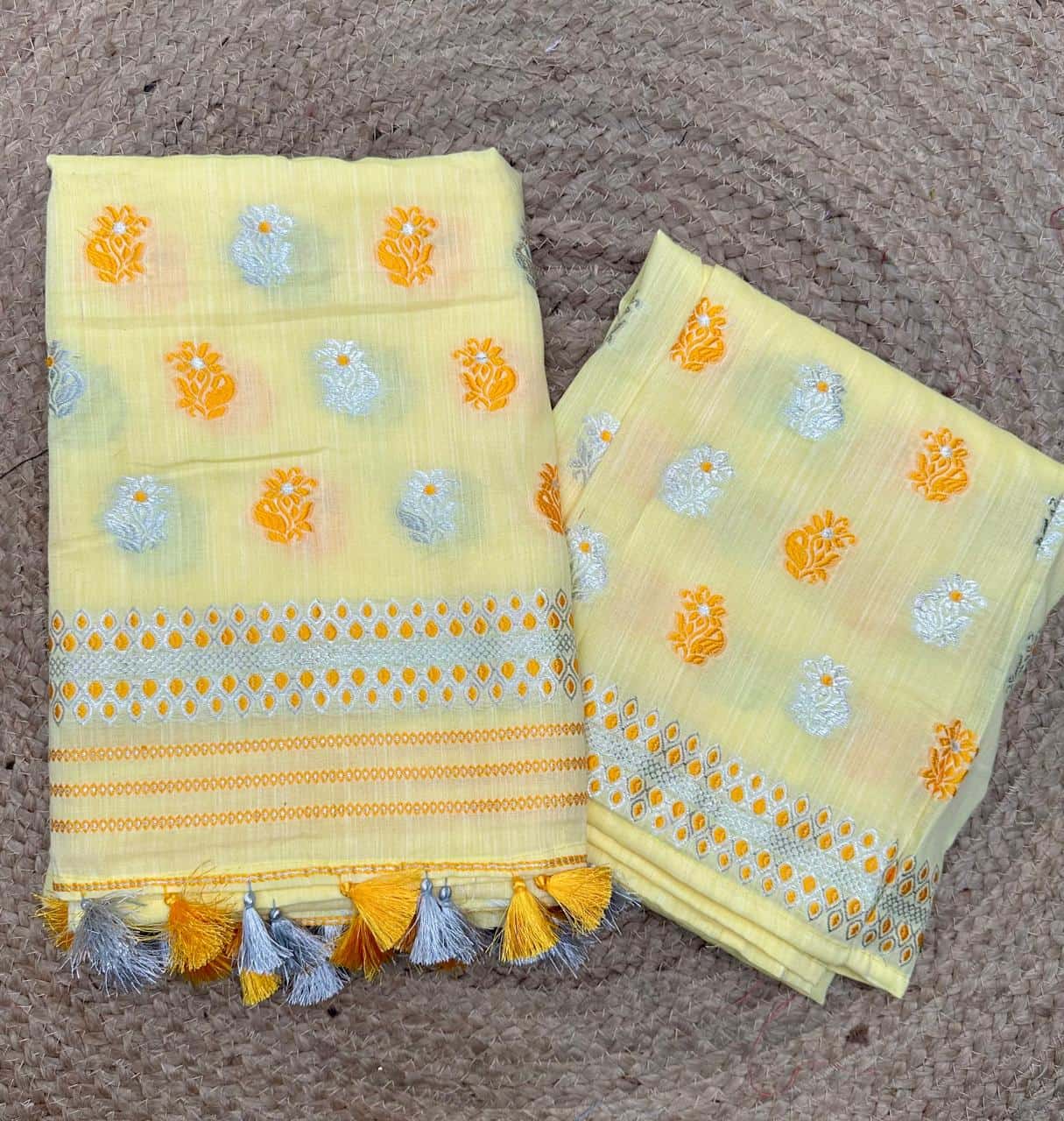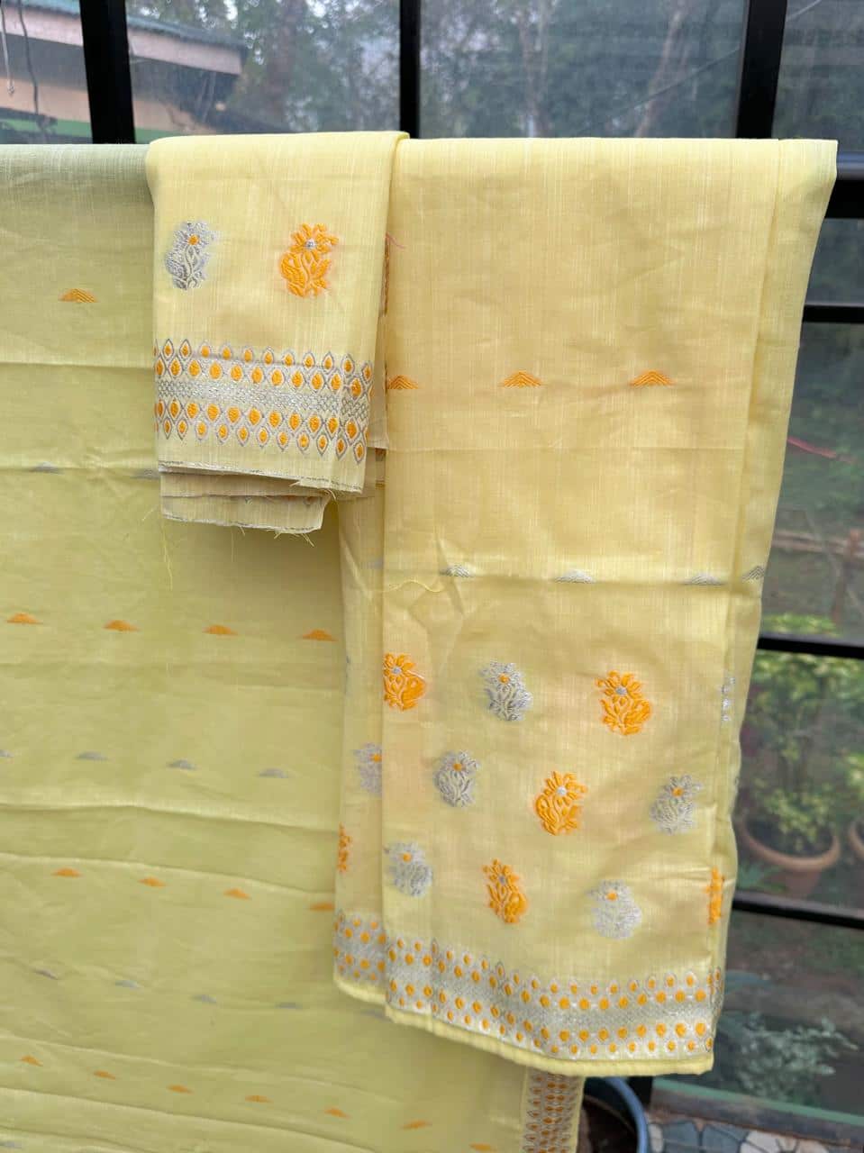 Ready-to-wear mekhela sador crafted in soft, breathable cotton for all-day comfort and ease. Pocket-friendly and designed in beautiful pastel hues, this piece is perfect for everyday wear while maintaining an elegant, graceful appeal. Adorned with delicate floral motifs and subtle silver thread highlights, it adds just the right touch of refinement without being overwhelming. It comes with an attached unstitched blouse piece, allowing for personalized styling. Ideal for casual outings, daily workwear, or even thoughtful gifting, this set brings together comfort, versatility, and understated style effortlessly.