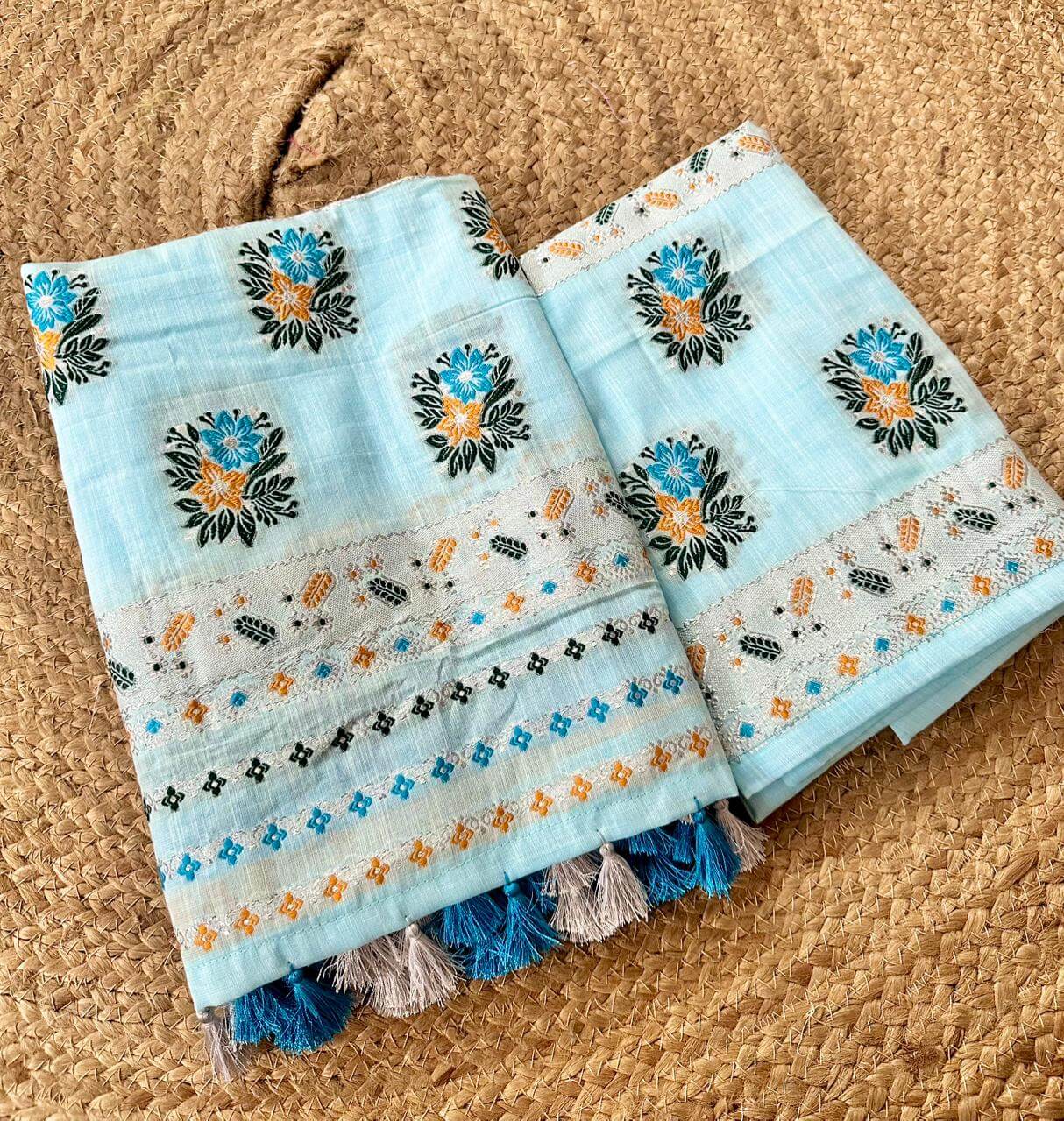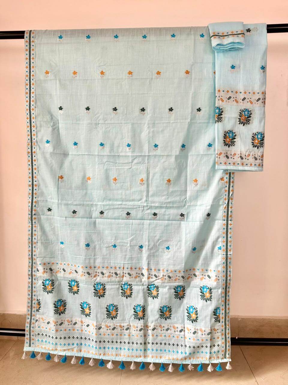 Step into effortless elegance with our ready-to-wear premium cotton Mekhela Sador, designed for comfort and modern grace. Crafted in soft pastel and light hues, it features delicately scattered floral motifs across the body that create a fresh, spring-inspired look without feeling heavy. Light, breathable, and beautifully colored, it’s perfect for everyday elegance and festive moments alike. Blouse piece comes unstitched.