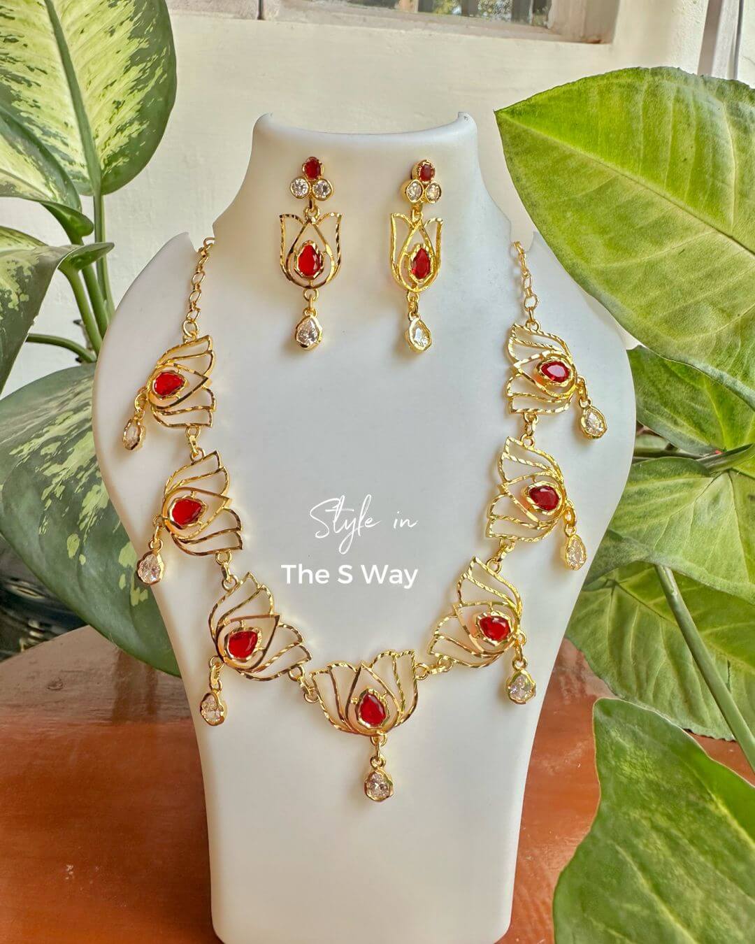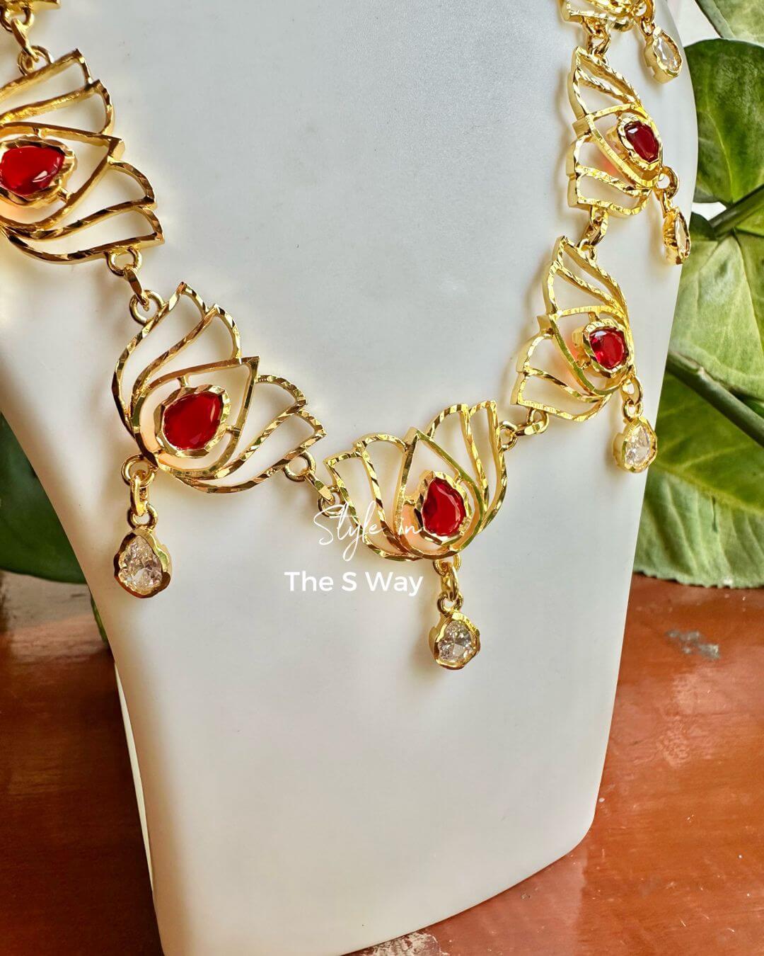 Crafted as part of our Bohag Bihu Demi-Fine Collection, this piece celebrates the elegance of traditional Assamese jewellery with a refined contemporary touch. Designed with intricate “Lotus with tear drop” detailing on the pendant, finished in red and white accents, it reflects cultural artistry while remaining lightweight and versatile for modern wear. Perfect for festive celebrations and cultural occasions, this piece beautifully blends heritage inspiration with effortless sophistication.