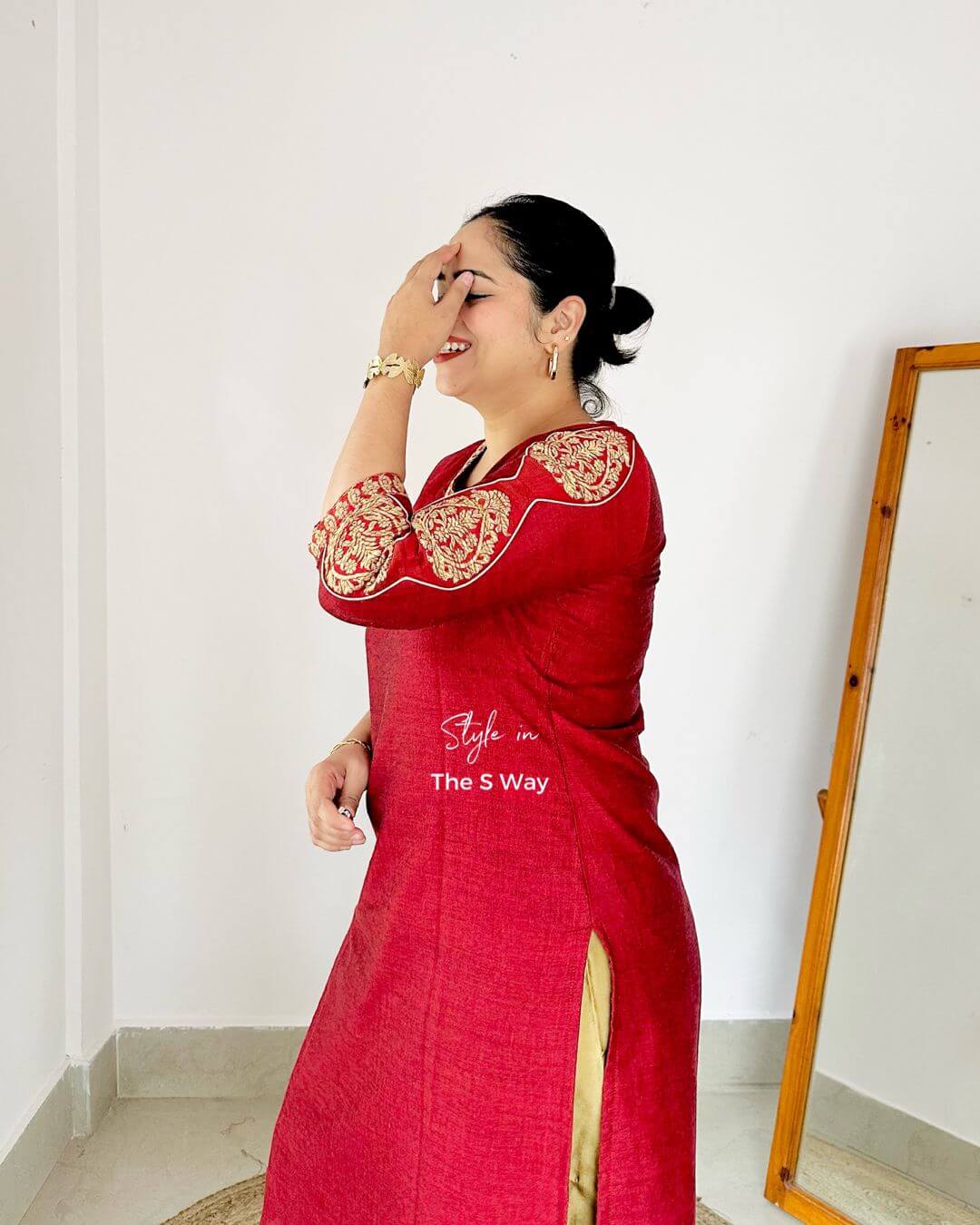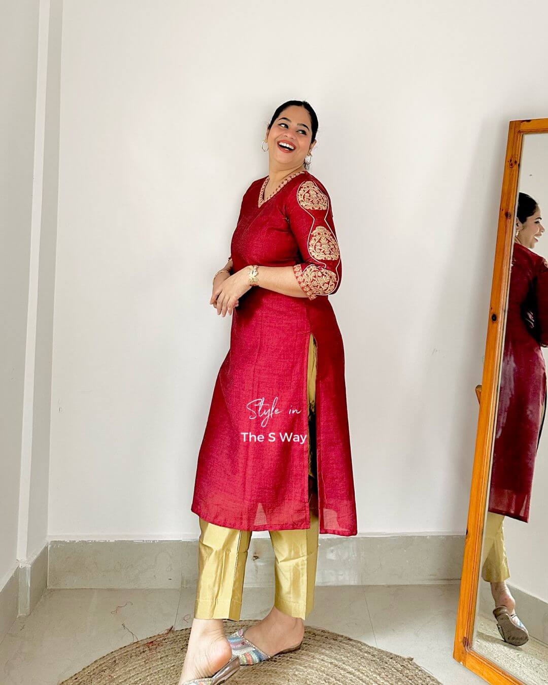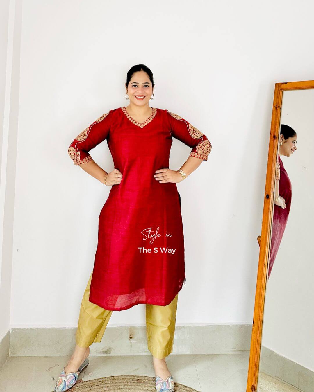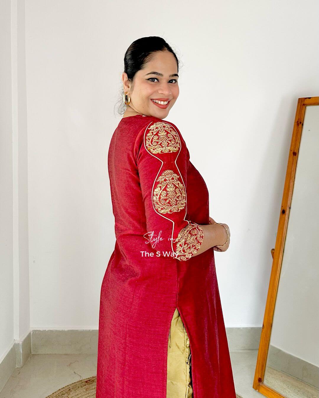 Crafted in handloom khadi cotton, this maroon kurta blends elegance with comfort. The fabric is soft, premium, and rich in texture, making it ideal for all-day wear. Its highlight lies in the statement sleeves, adorned with the traditional Hingkham Assamese motif, intricately woven in raw ghisa threads. A V-neckline with ghisa detailing adds a refined touch. Pant not included.