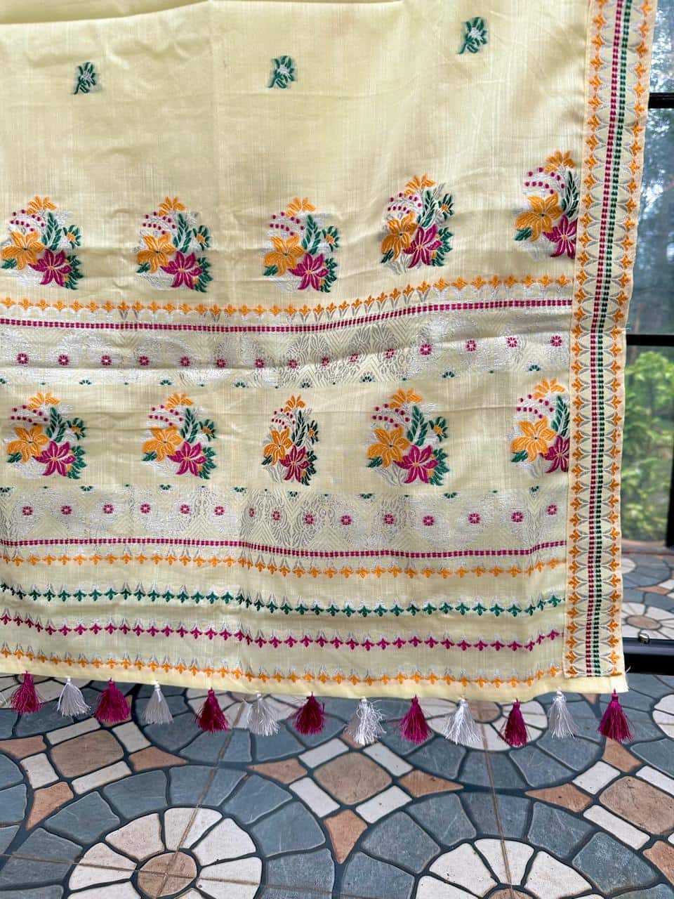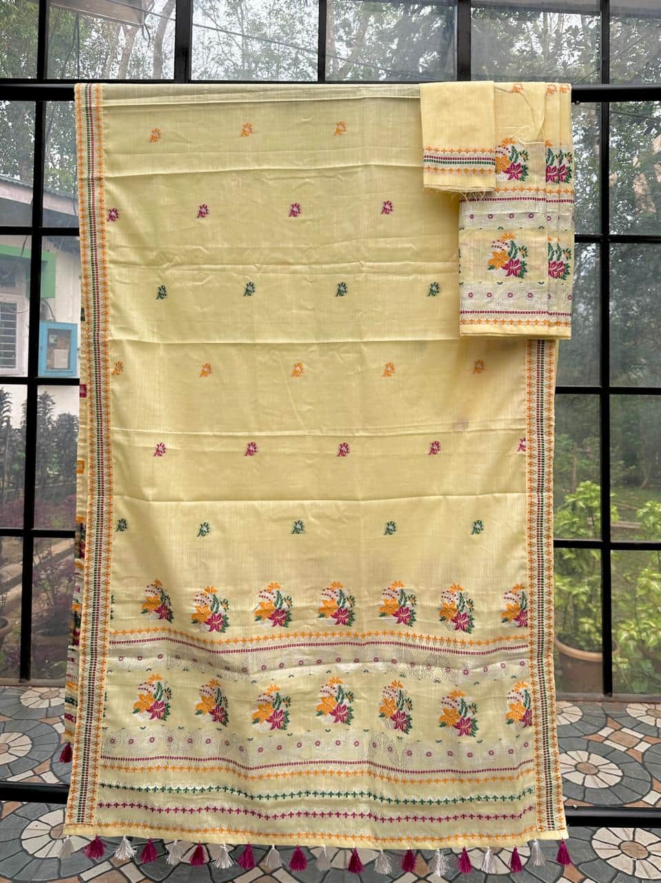 Disclaimer: While we strive to ensure our product images are as accurate as possible, slight variations in color may occur due to lighting conditions during photography and differences in screen displays or brightness settings. This ready-to-wear mekhela sador does not include a fall in the mekhela; however, a fall can be added later as per personal preference for enhanced structure and drape.