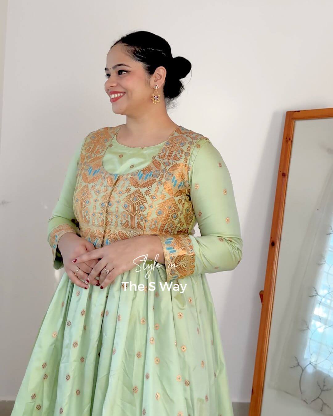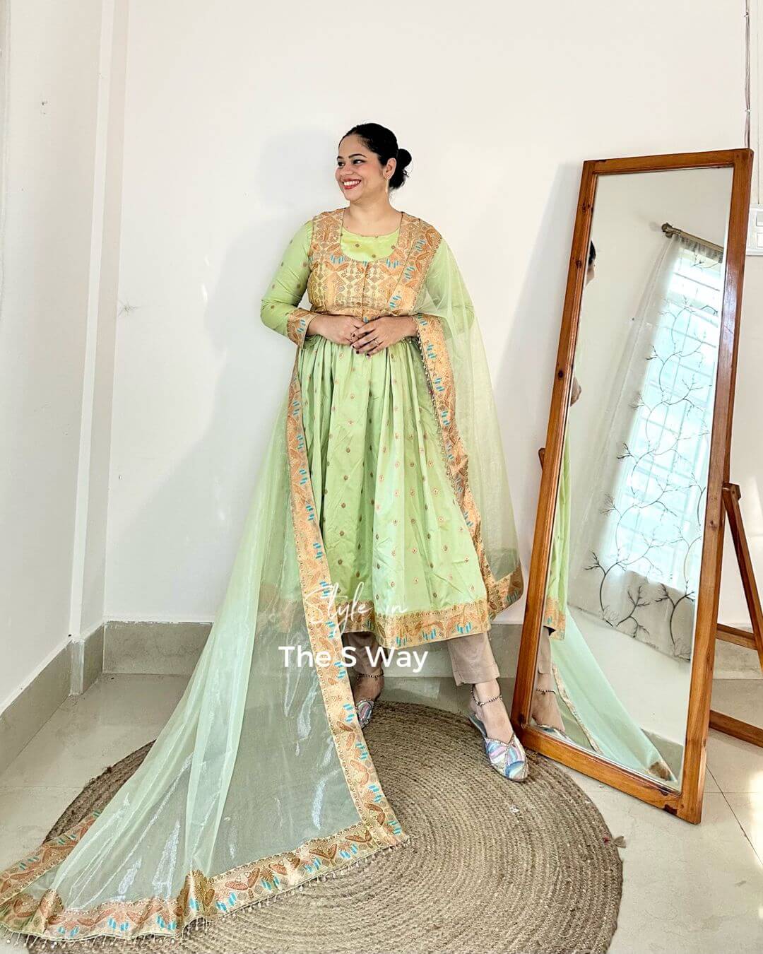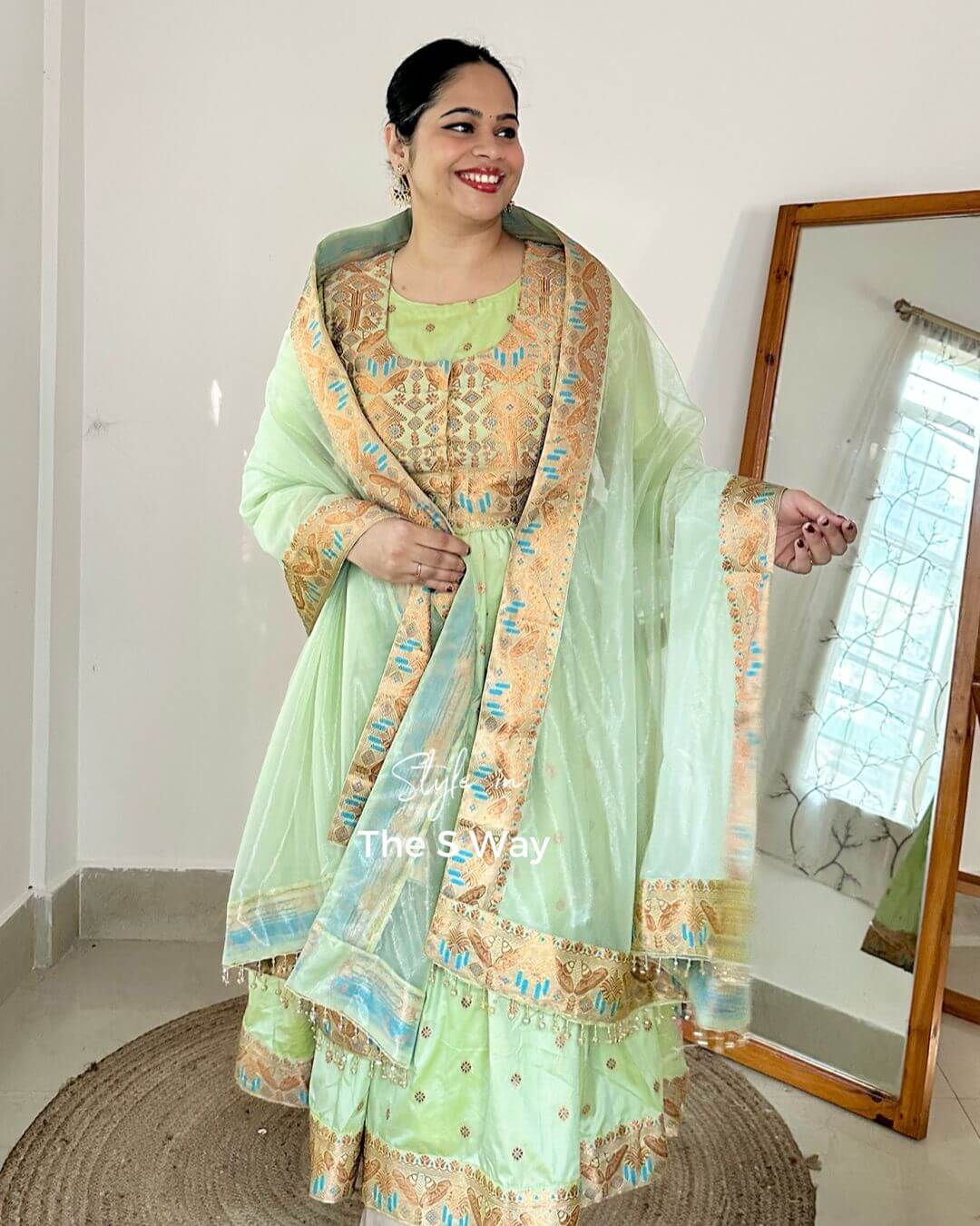This Royal Regal Anarkali Kurta Set features a stunning detachable half jacket, which can also be styled separately as a blouse. Crafted from Banarasi zari brocade in lyocell, the ensemble delivers richness with fluid comfort. It is paired with a heavily embellished premium net dupatta for a grand, wedding-ready look. Pants not included.