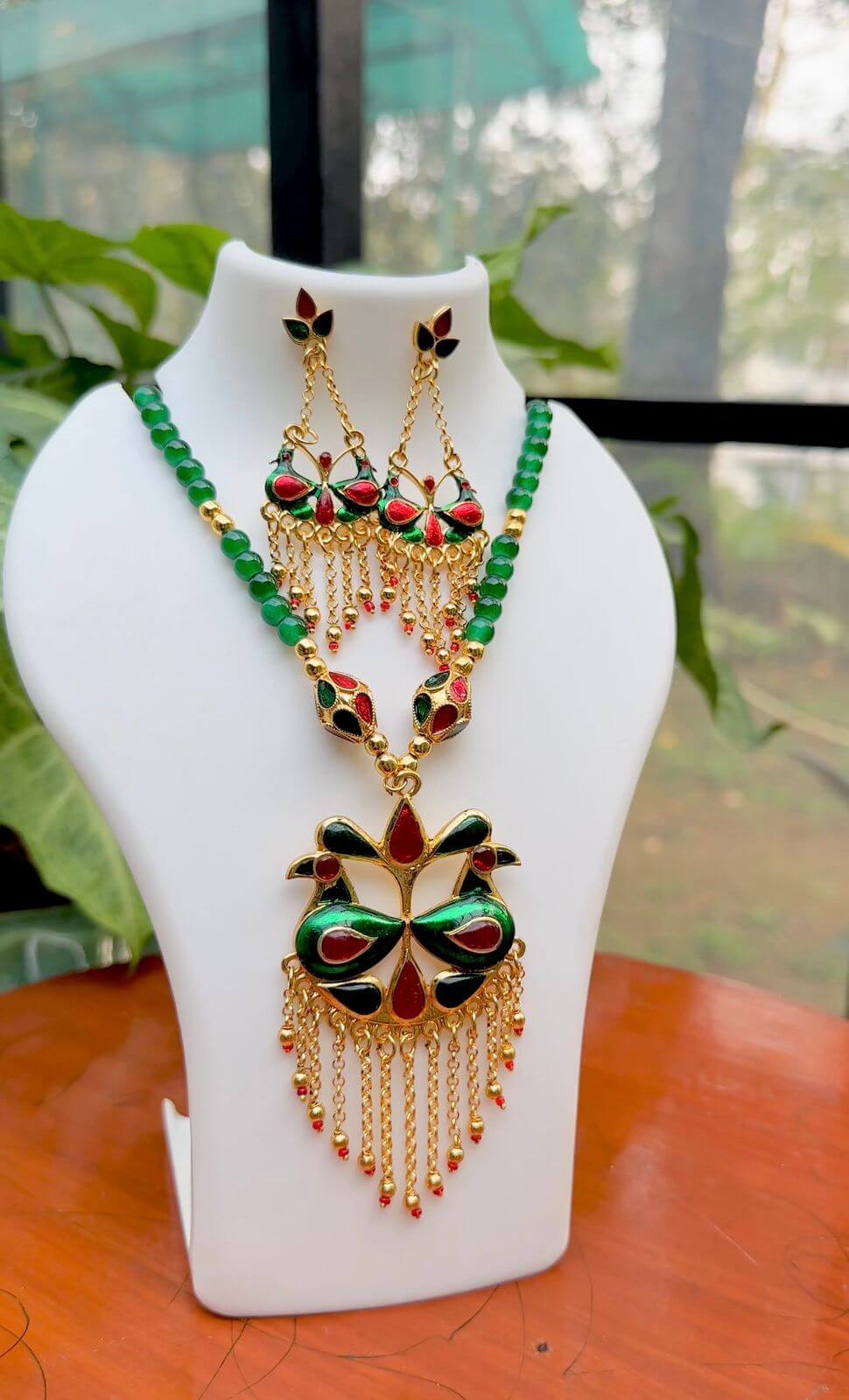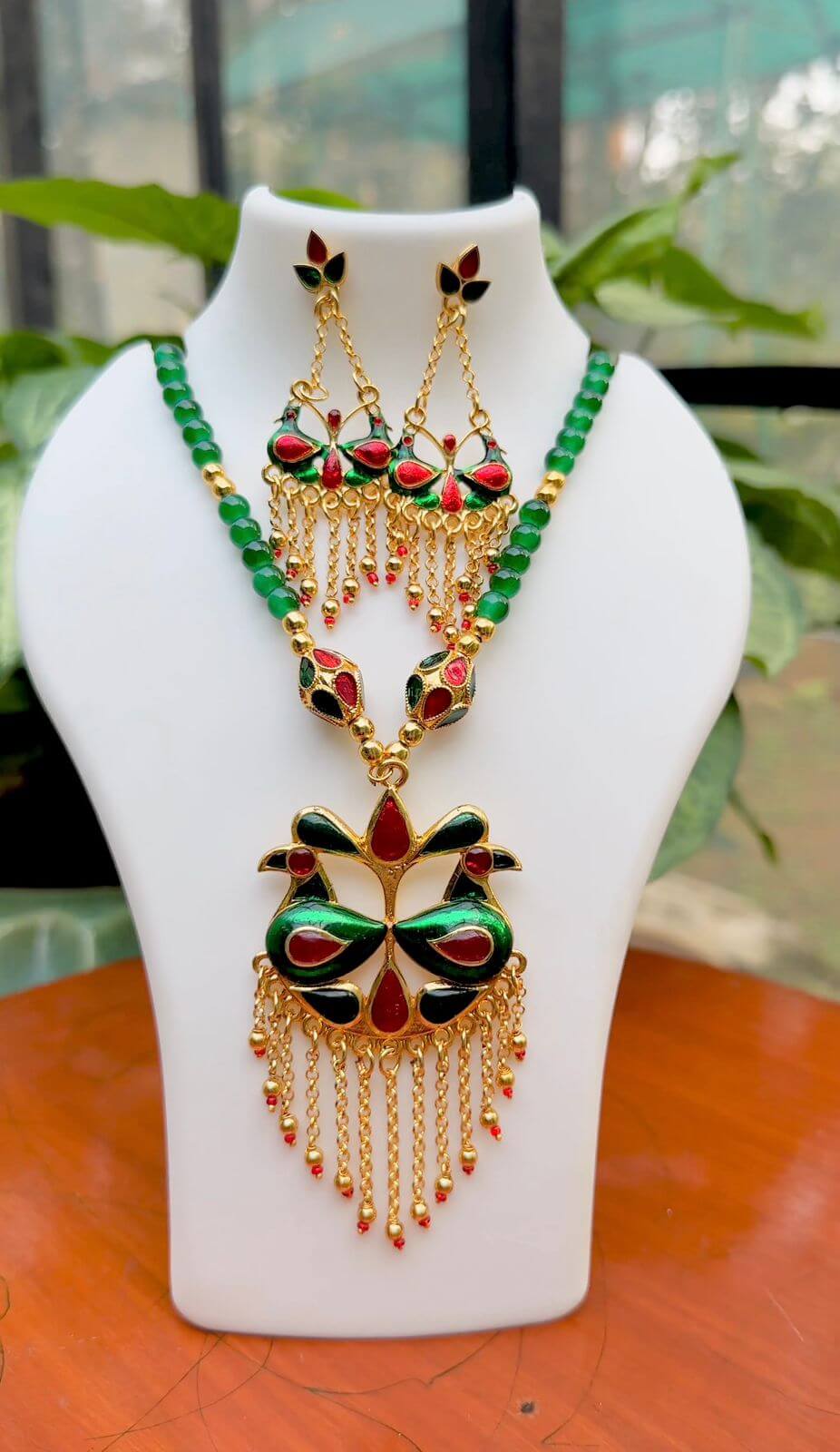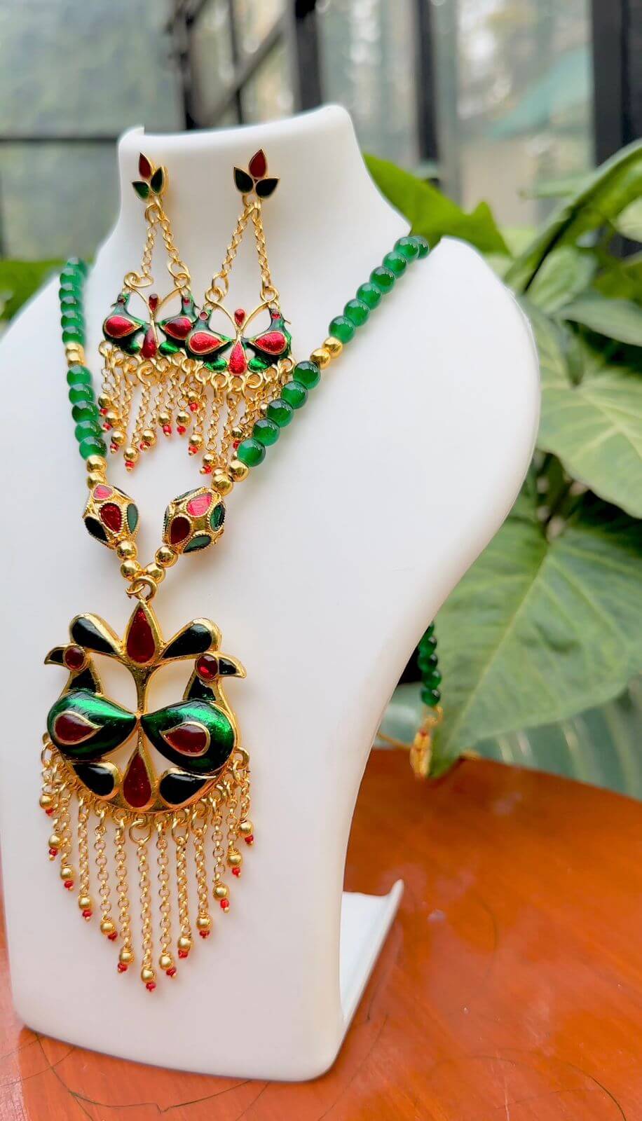 A statement piece crafted for timeless elegance. Intricate premium green beads detailing frames l a bold “Lukaparo” embellished with delicate golden drops which adds a soft, feminine charm. Rich, regal, and beautifully detailed — perfect for elevating traditional ensembles.