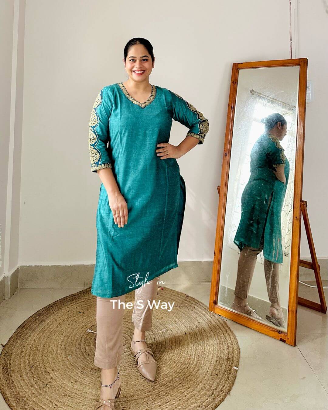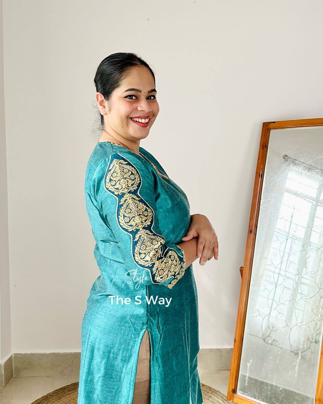 Crafted in handloom khadi cotton, this maroon kurta blends elegance with comfort. The fabric is soft, premium, and rich in texture, making it ideal for all-day wear. Its highlight lies in the statement sleeves, adorned with the traditional Hingkham Assamese motif, intricately woven in raw ghisa threads. A V-neckline with ghisa detailing adds a refined touch. Please note: pant not included.