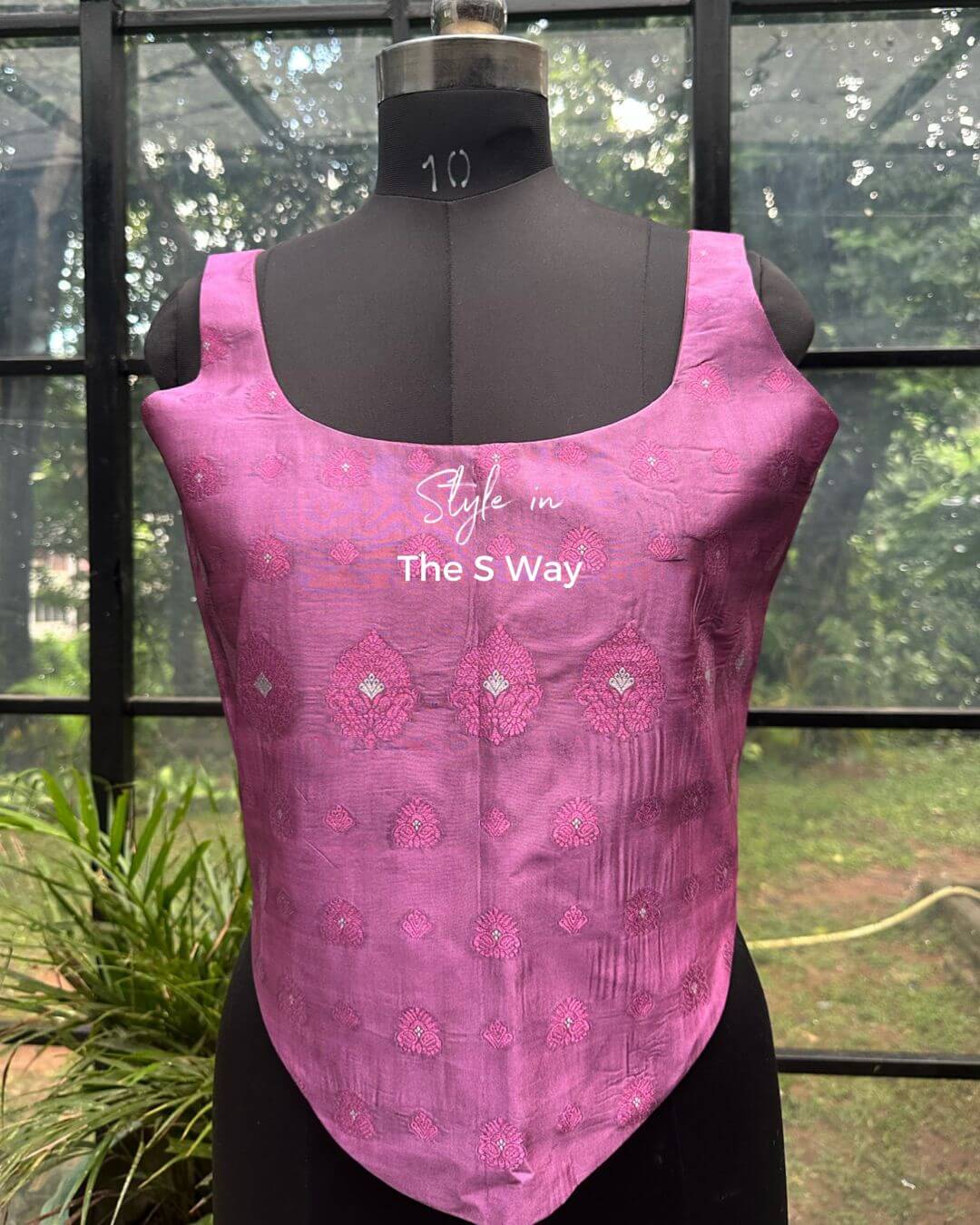 Elevate your style with this Banarasi Brocade Blend Corset, crafted to combine traditional richness with a modern silhouette. The structured design hugs the body gracefully, offering a flattering curved front fit. Perfect for styling with sarees, skirts, or trousers, this corset blends timeless elegance with contemporary versatility.