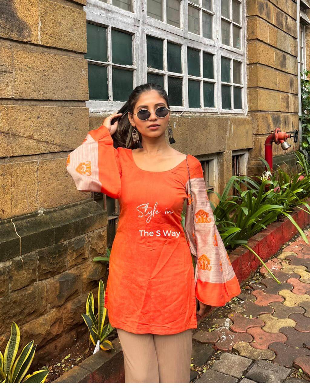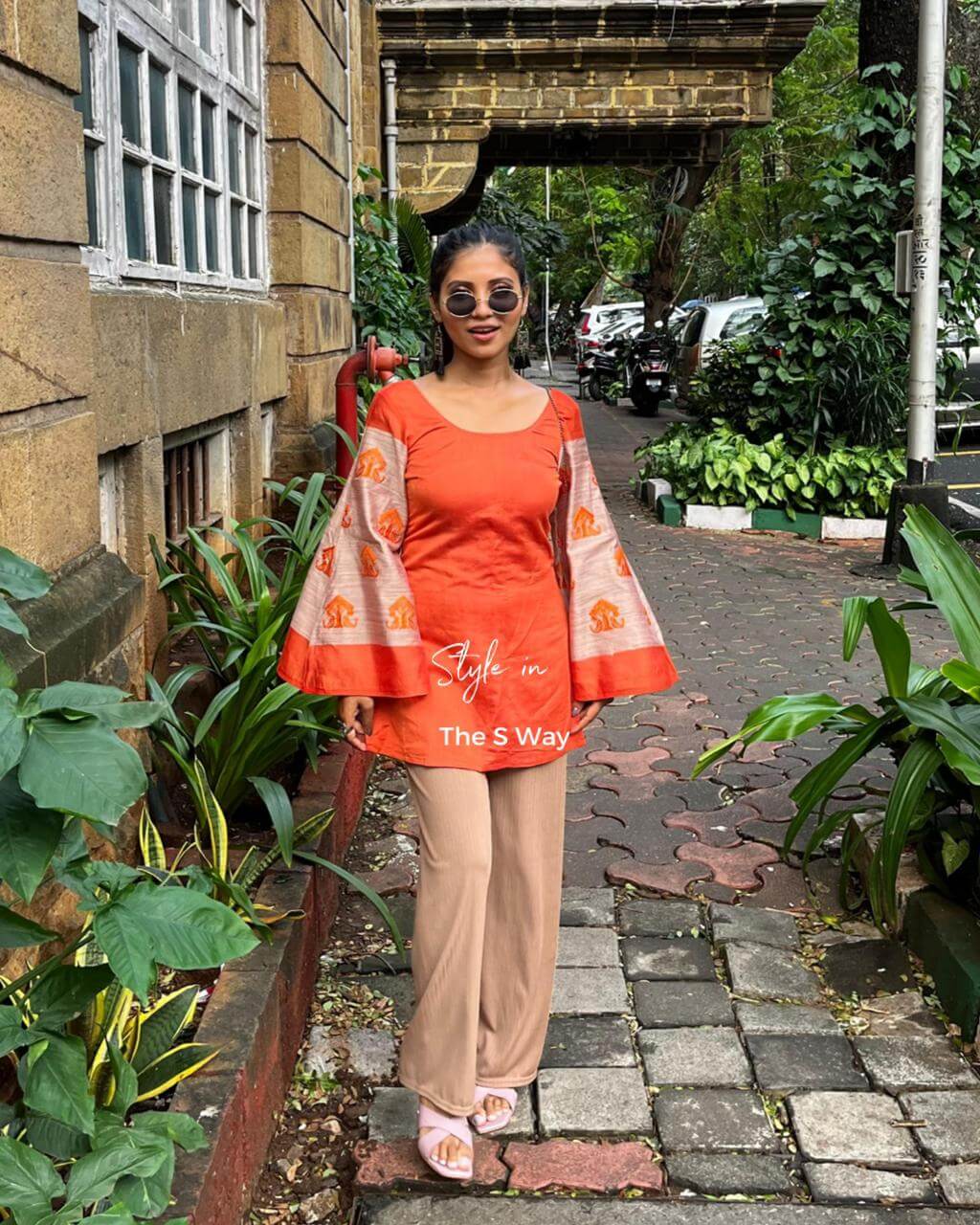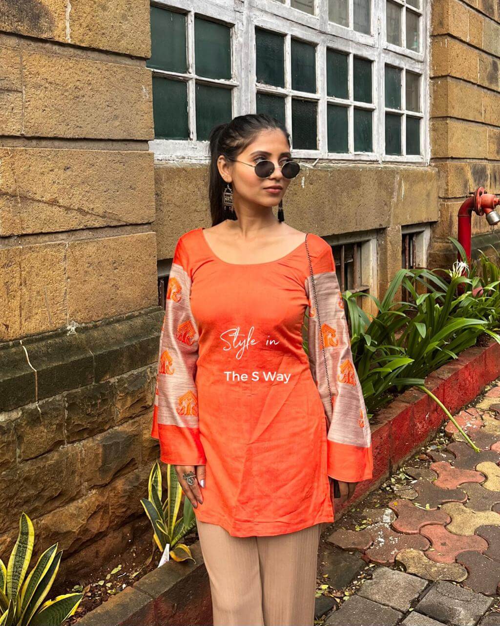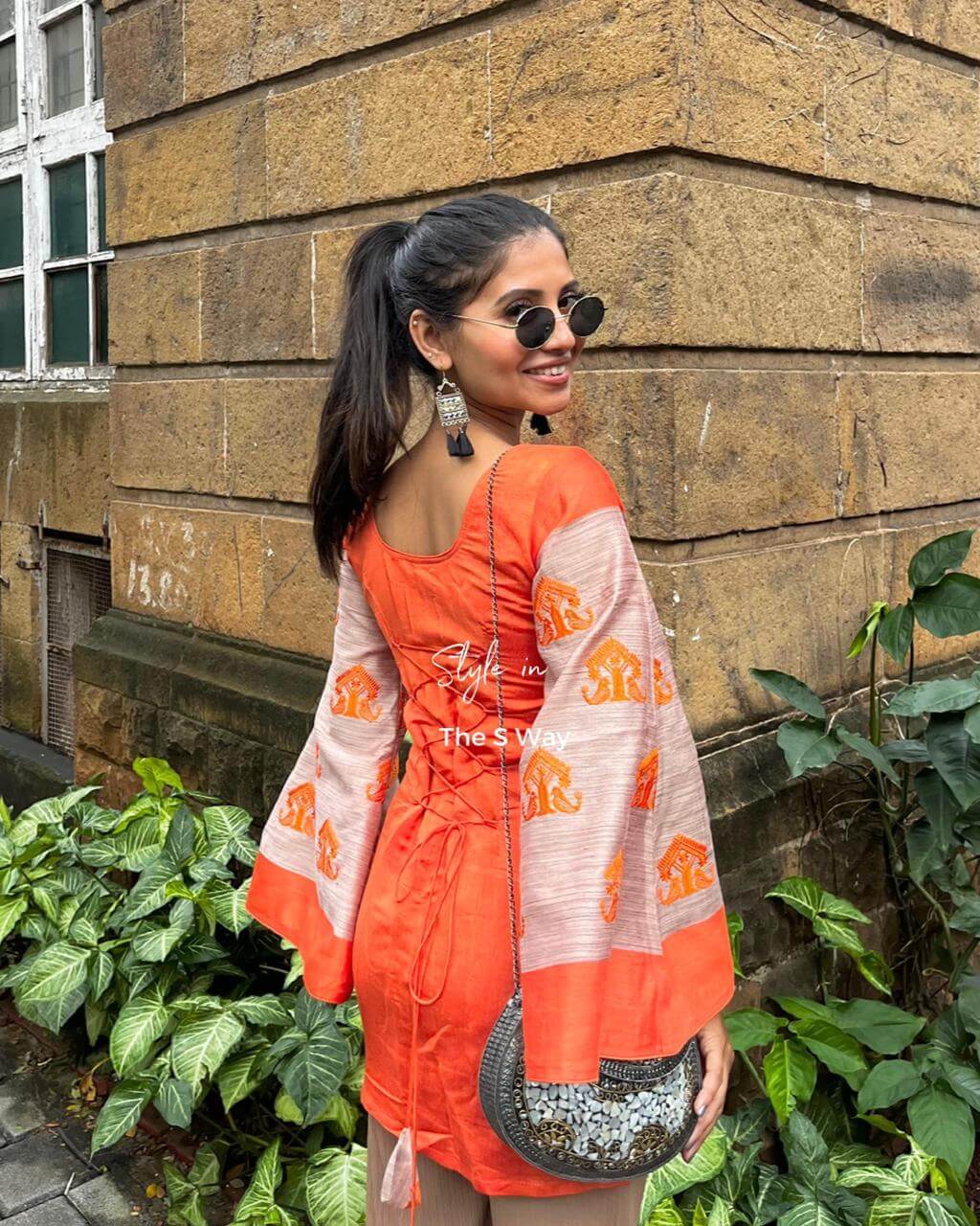 This Reshmi Cotton-by-Cotton Short Kurta is designed with elegant embroidery on bell sleeves and a structured corset back for a flattering fit. Crafted in soft reshmi cotton, it blends traditional craftsmanship with a chic, contemporary silhouette. Pants not included.