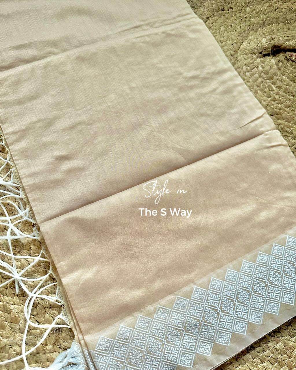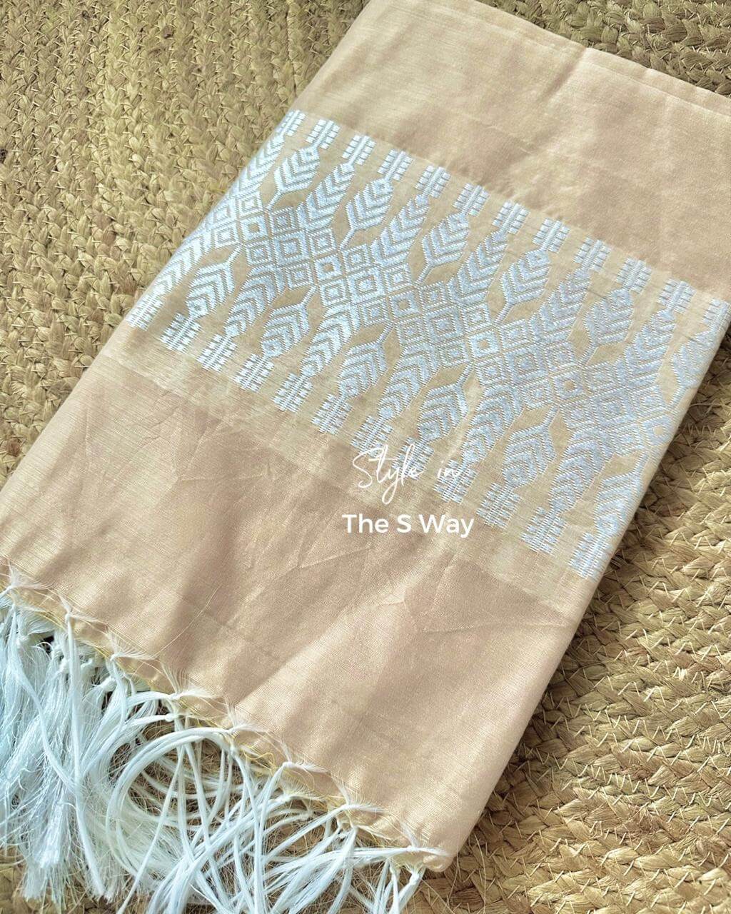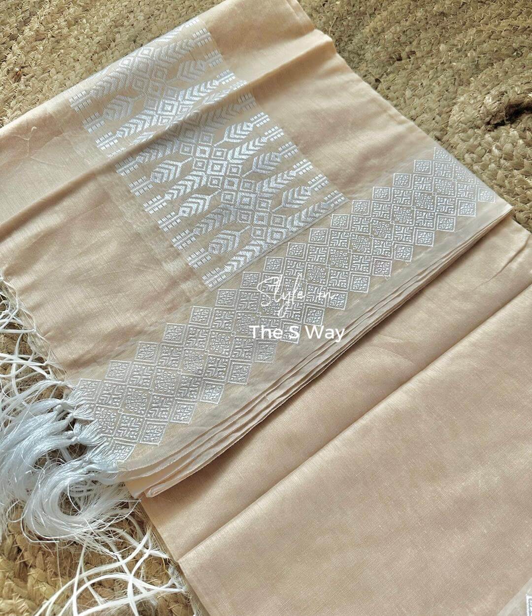 This single sador, material Nuni by Chanderi, is a graceful fusion of softness and subtle sheen. Lightweight yet elegant, it drapes beautifully—perfect for those who seek tradition with a modern twist.