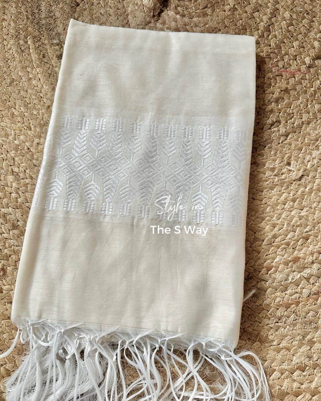 This single sador, material Nuni by Chanderi, is a graceful fusion of softness and subtle sheen. Lightweight yet elegant, it drapes beautifully—perfect for those who seek tradition with a modern twist.