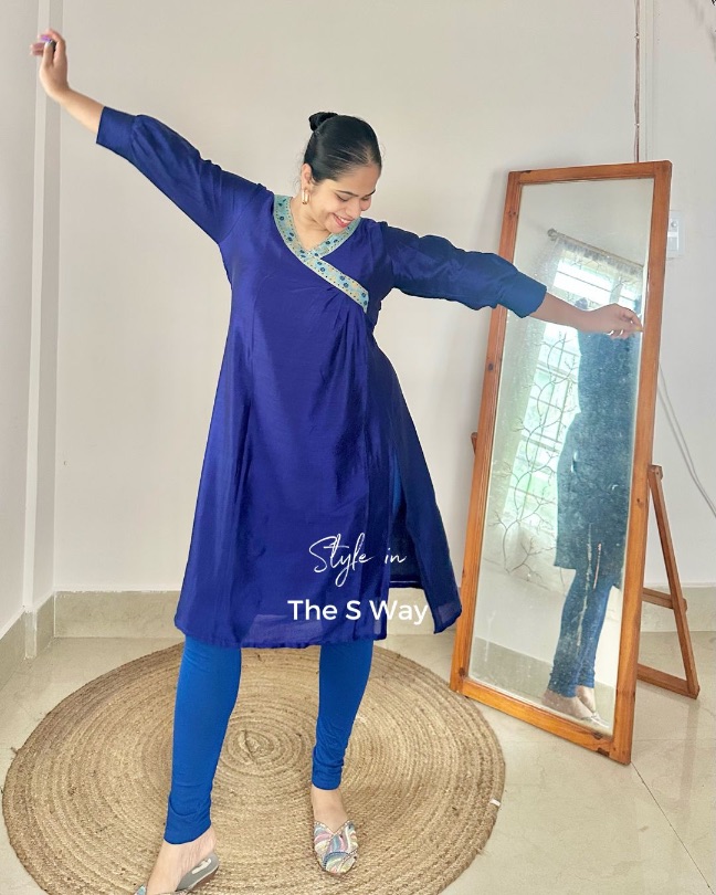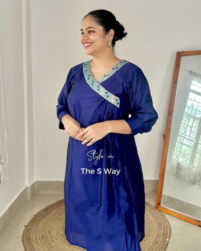 Turn heads with this royal blue khadi cotton kurta, crafted in a retro puff sleeve style that brings back timeless elegance. The design carries a modern feminine touch while showcasing intricate handloom traditional detailing, making it a beautiful fusion of old-world charm and contemporary flair. Perfect for festive occasions, cultural gatherings, or chic everyday wear, this kurta is a true wardrobe statement.