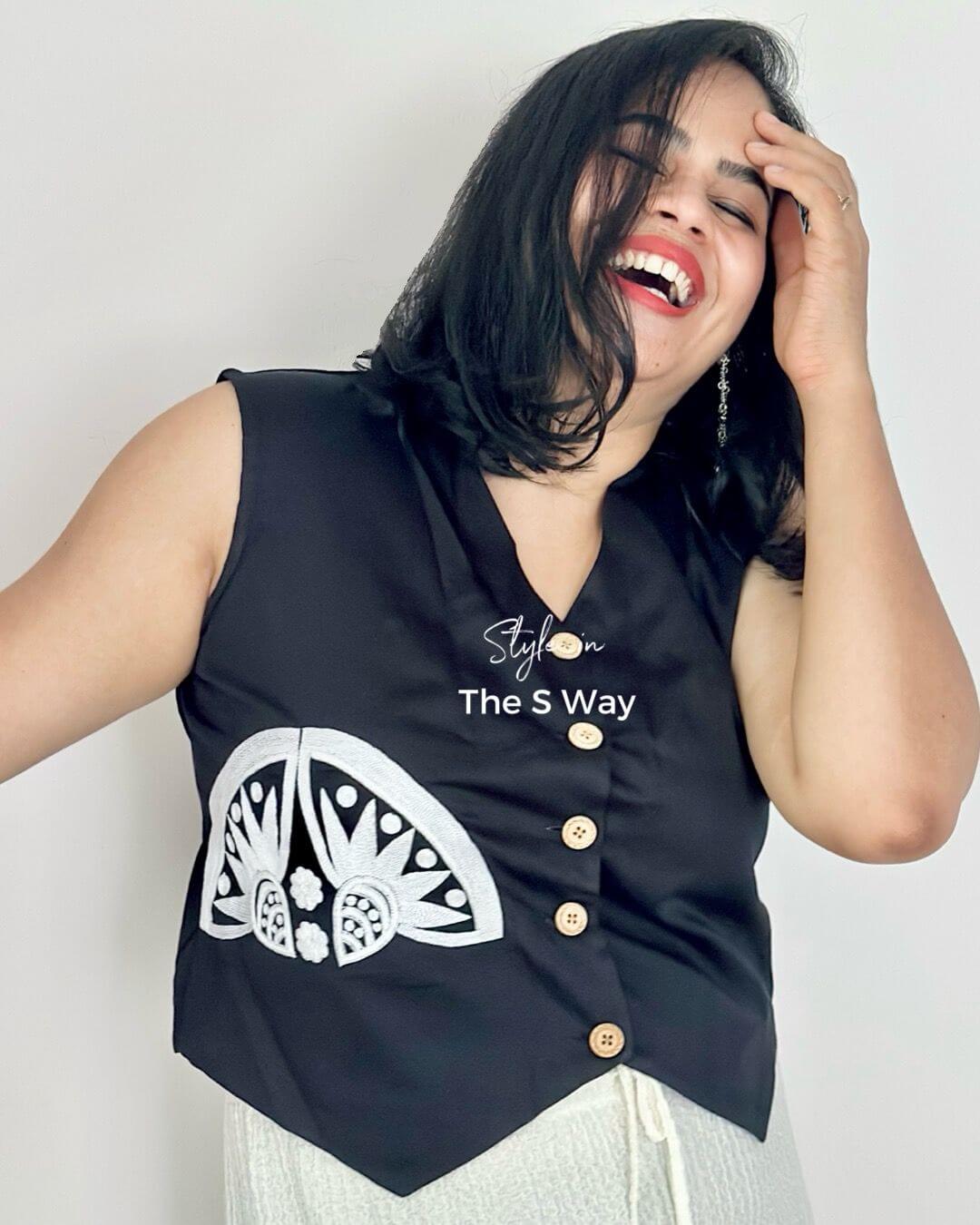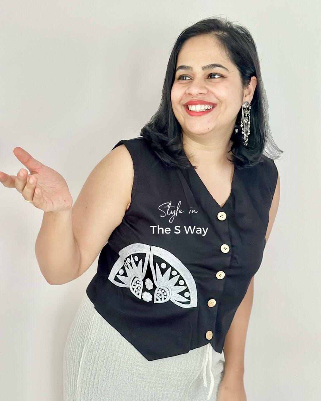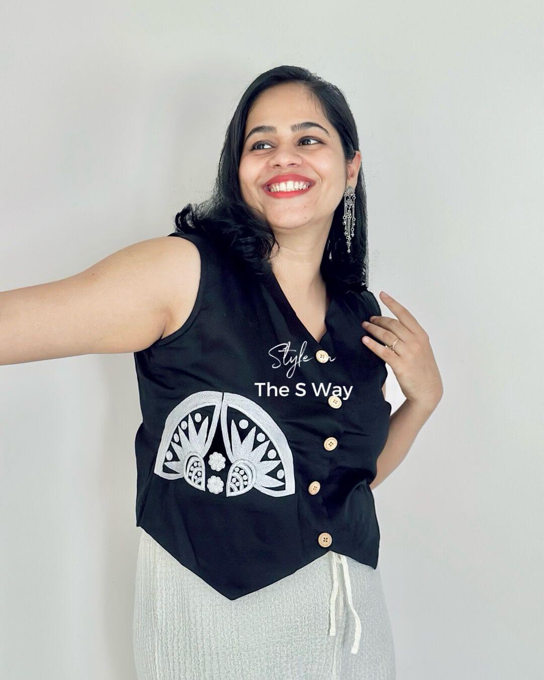 Make a bold statement in The S Way’s exclusive designer Japi Buta Waistcoat, featuring a floral twist and intricate hand Zardozi embroidery. Crafted from premium Reshmi cotton and finished with elegant wooden buttons.